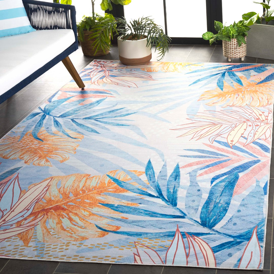 This rug is not just a visual delight but also a marvel in practicality. Fully washable and equipped with a slip-resistant backing, it brings both serene style and functional safety to your home. The dynamic rug pattern featuring an array of foliage offers a serene visual escape that complements modern decor while infusing a breath of natural beauty into your daily life.
