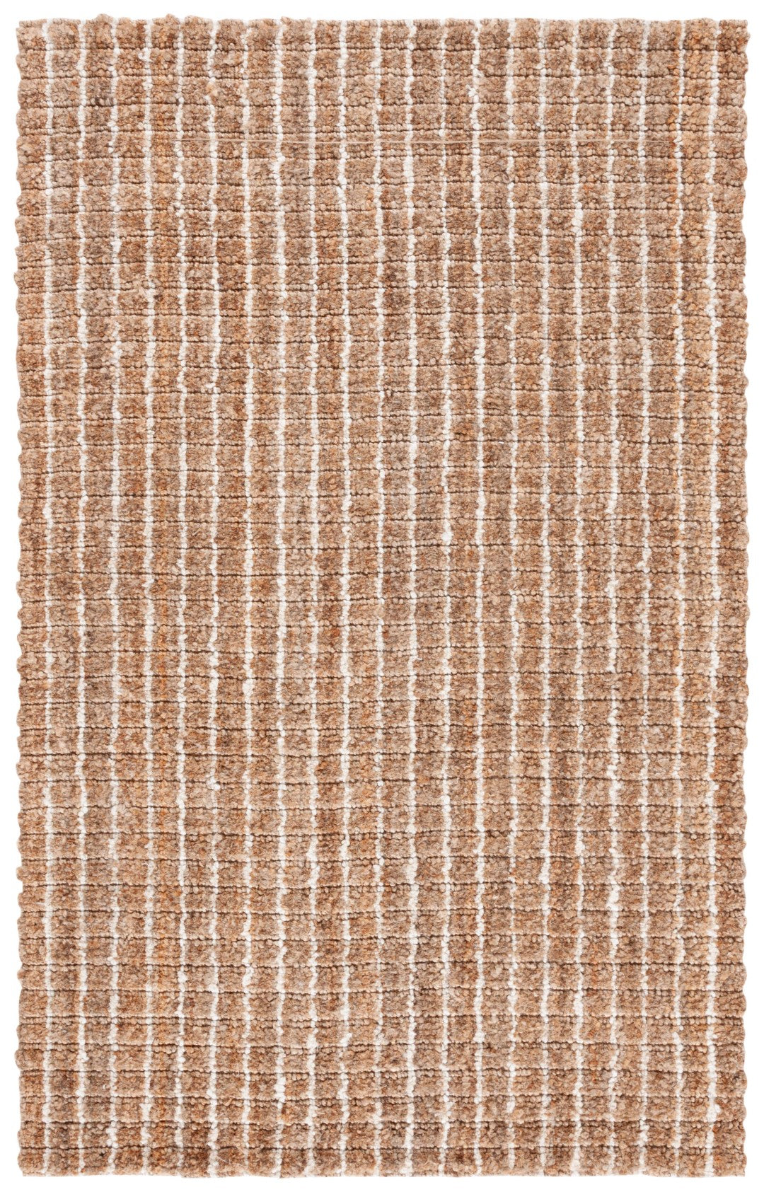 The rug's design features a harmonious blend of natural and bleach tones, creating a soothing striped pattern that exudes a serene and inviting atmosphere in any room. The combination of earthy hues in a clean, modern pattern allows for versatility in style, seamlessly integrating with a variety of decor themes.
