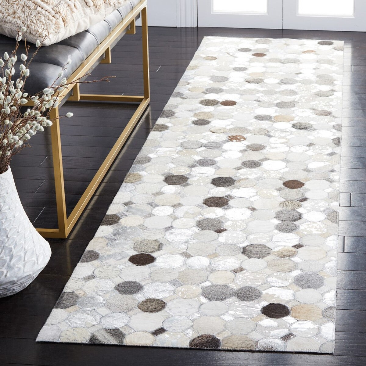 - FIBER/FINISH: 100% Hair on Leather Pile