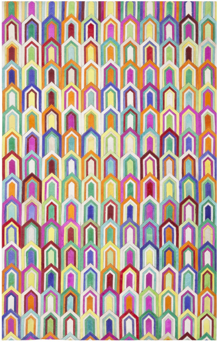 ric cutouts. Studio Leather rugs are impeccably hand-stitched creating contemporary works of art in marvelous natural cowhide tones and vivid primary colors. The eye-catching centerpiece for modern, or rustic-chic decor.