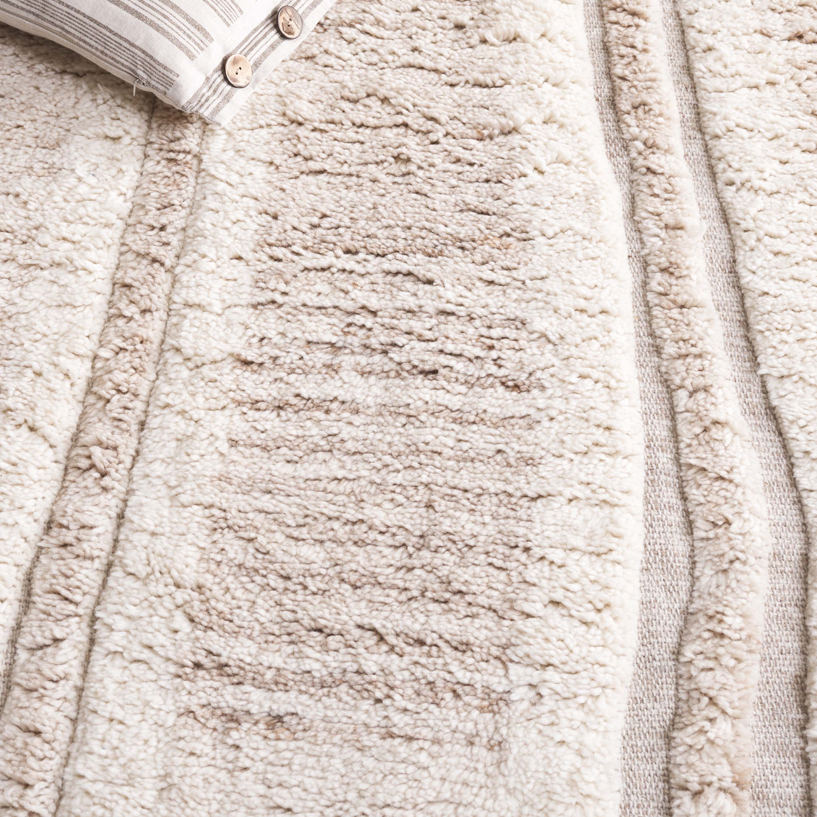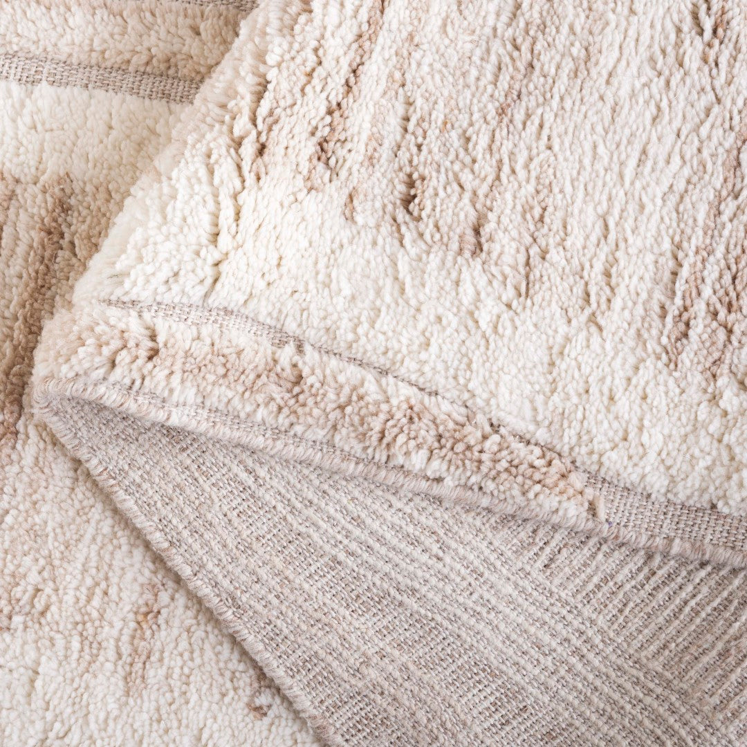 Constructed from a superior mix of 75% wool and 25% recycled cotton, this rug blends sustainability with durability. The wool composition ensures a soft, dense feel, while the recycled cotton adds strength and stability to the piece.