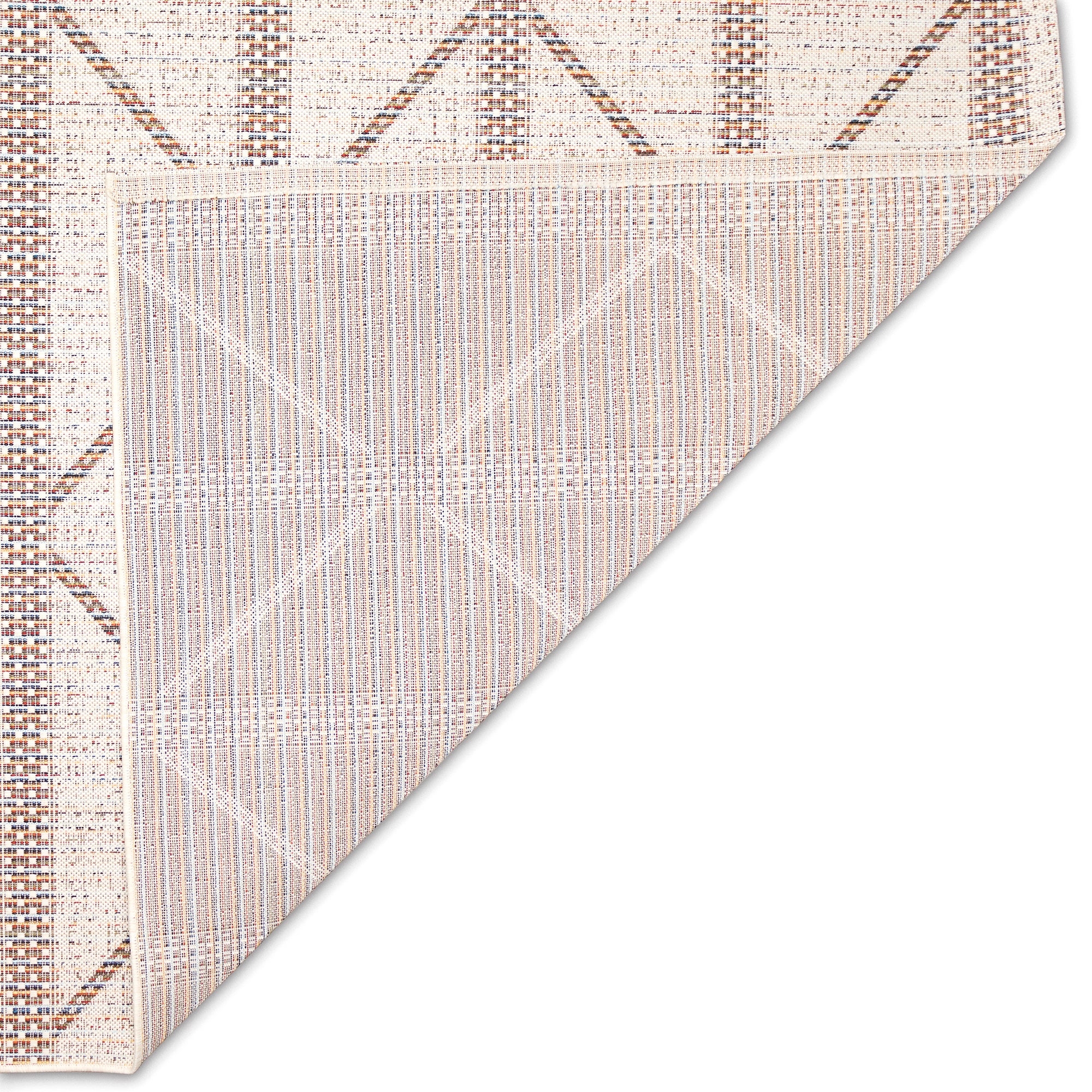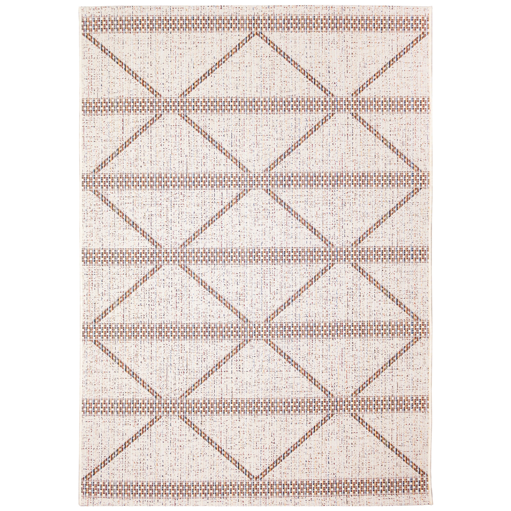 - Feature 10: A modern design featuring a geometric diamond and stripe pattern over a textured background in ivory with multi-color accents