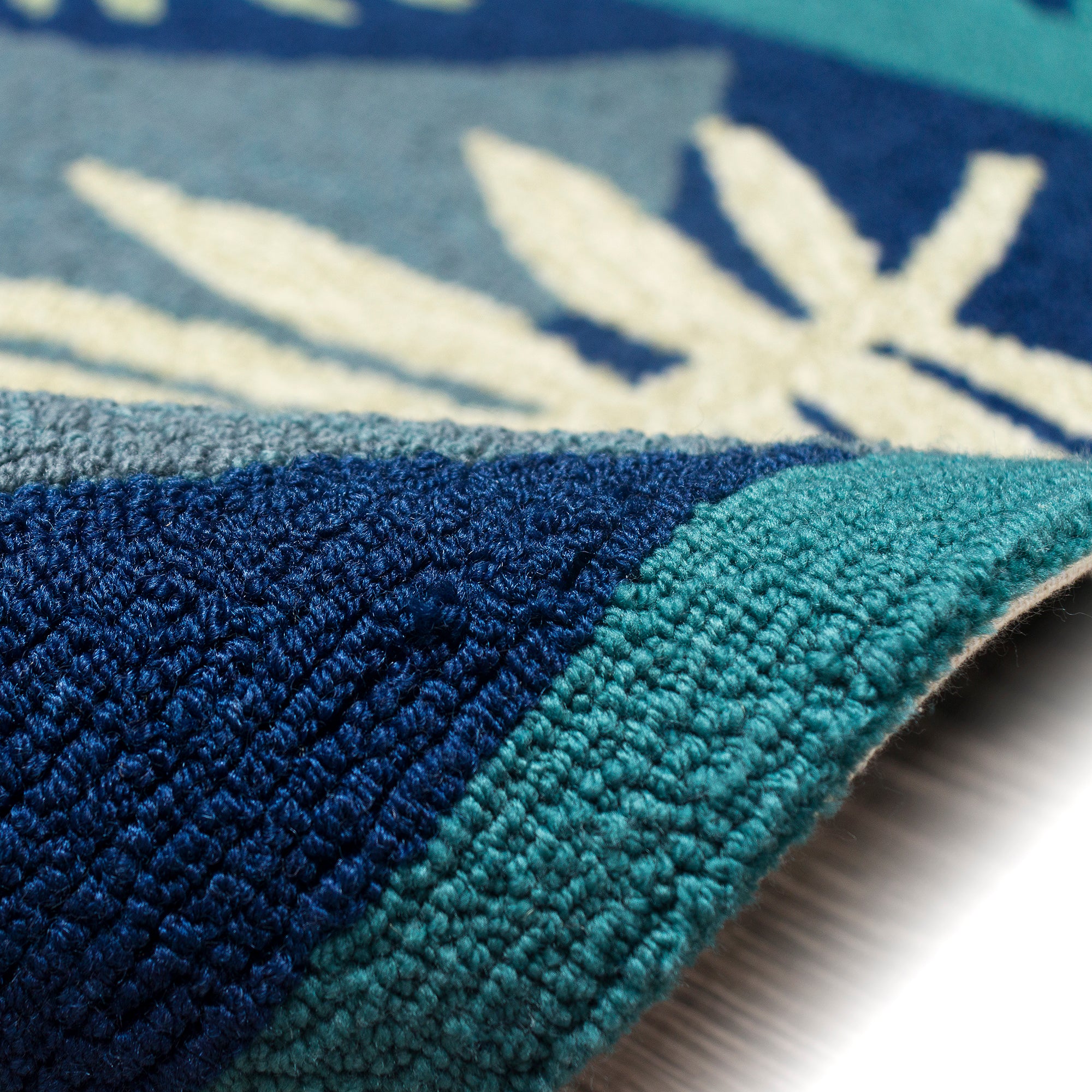 - Feature 10: This design features a bold background in navy blue and teal with yellow, green and light blue palm leaves