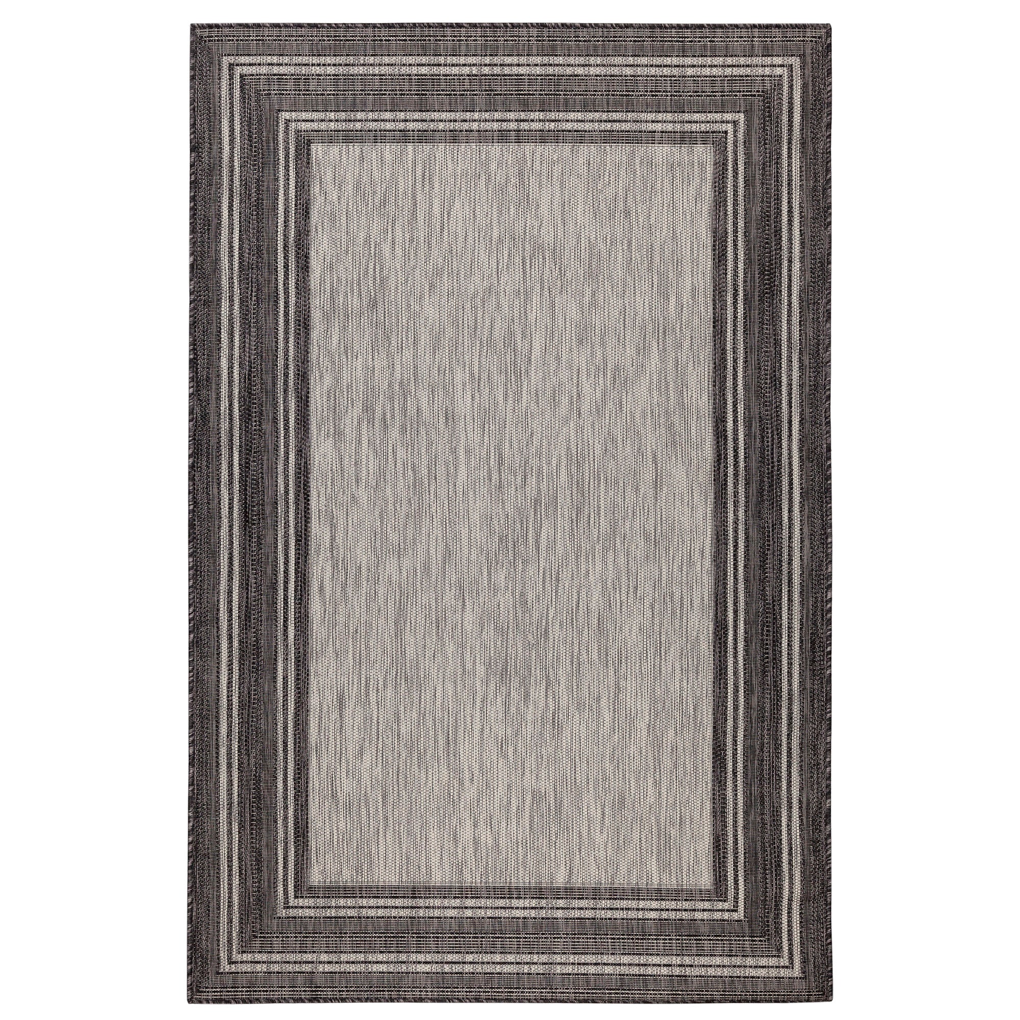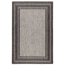 - Feature 11: The decorative multi border pattern with a solid grey center accented by multiple borders in ivory, navy and blue hues.