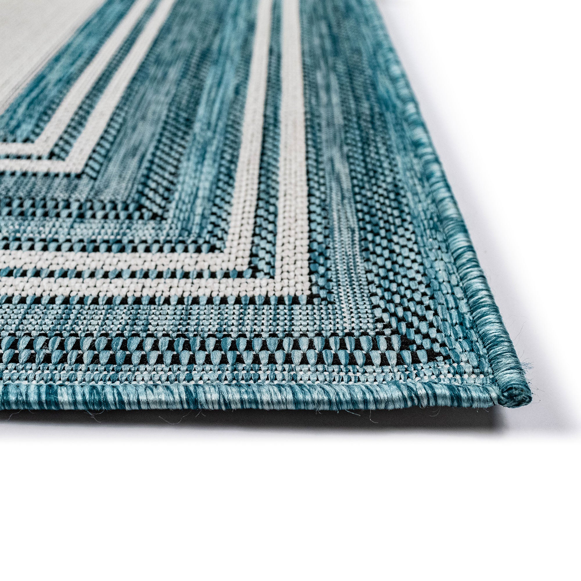 - Feature 10: This design features an aqua blue center surrounded by aqua, grey and blue borders