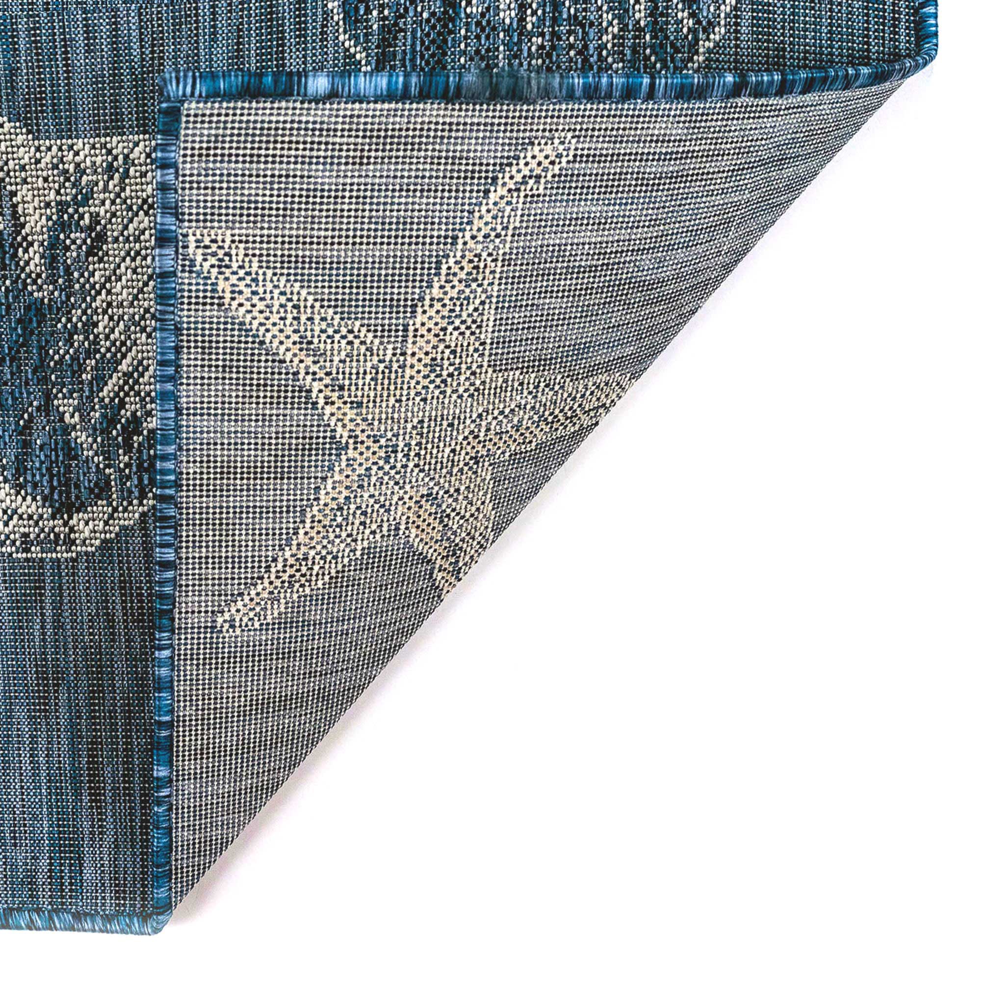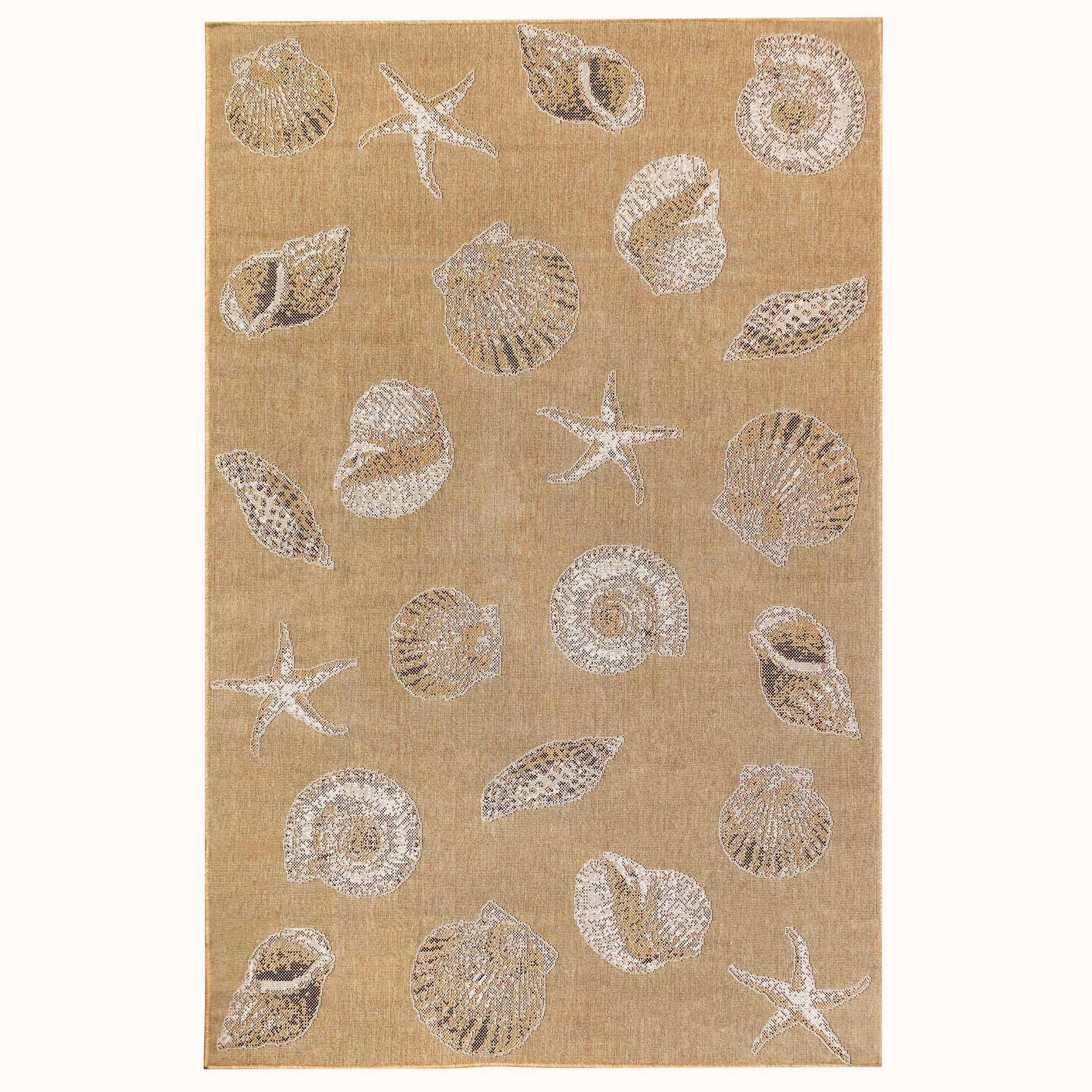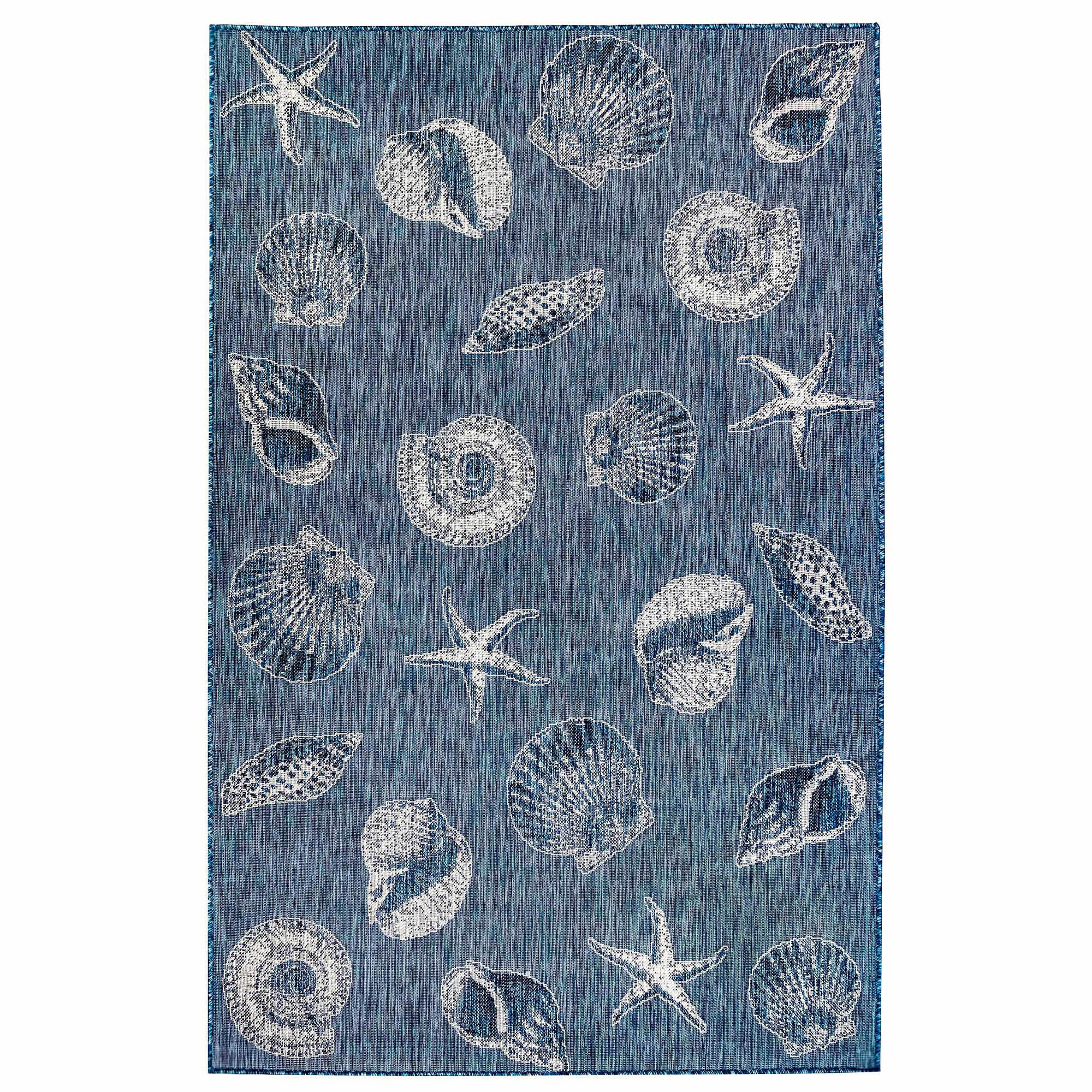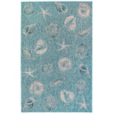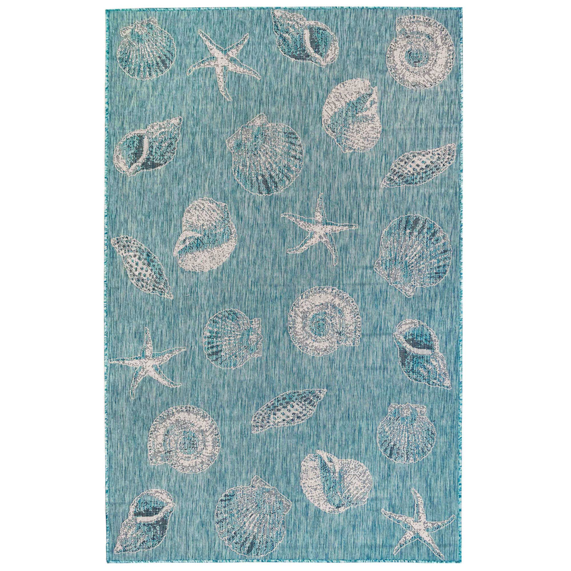 - Feature 11: This decorative area rug showcases an array of ivory seashells and starfish on an aqua background.
