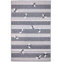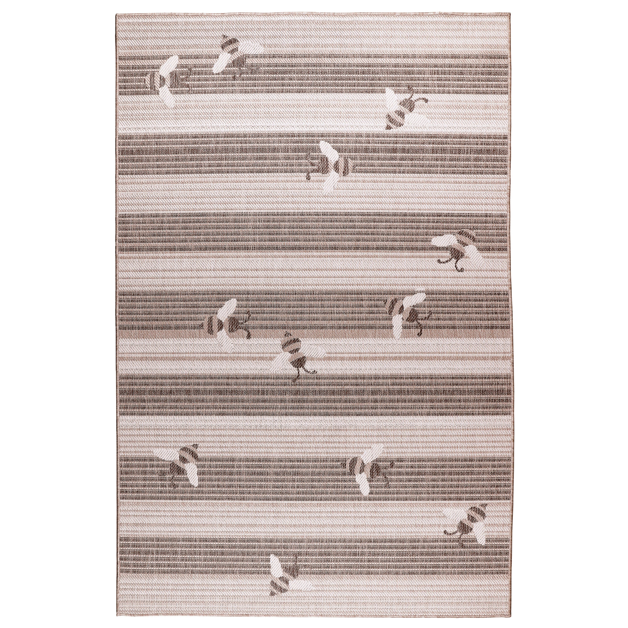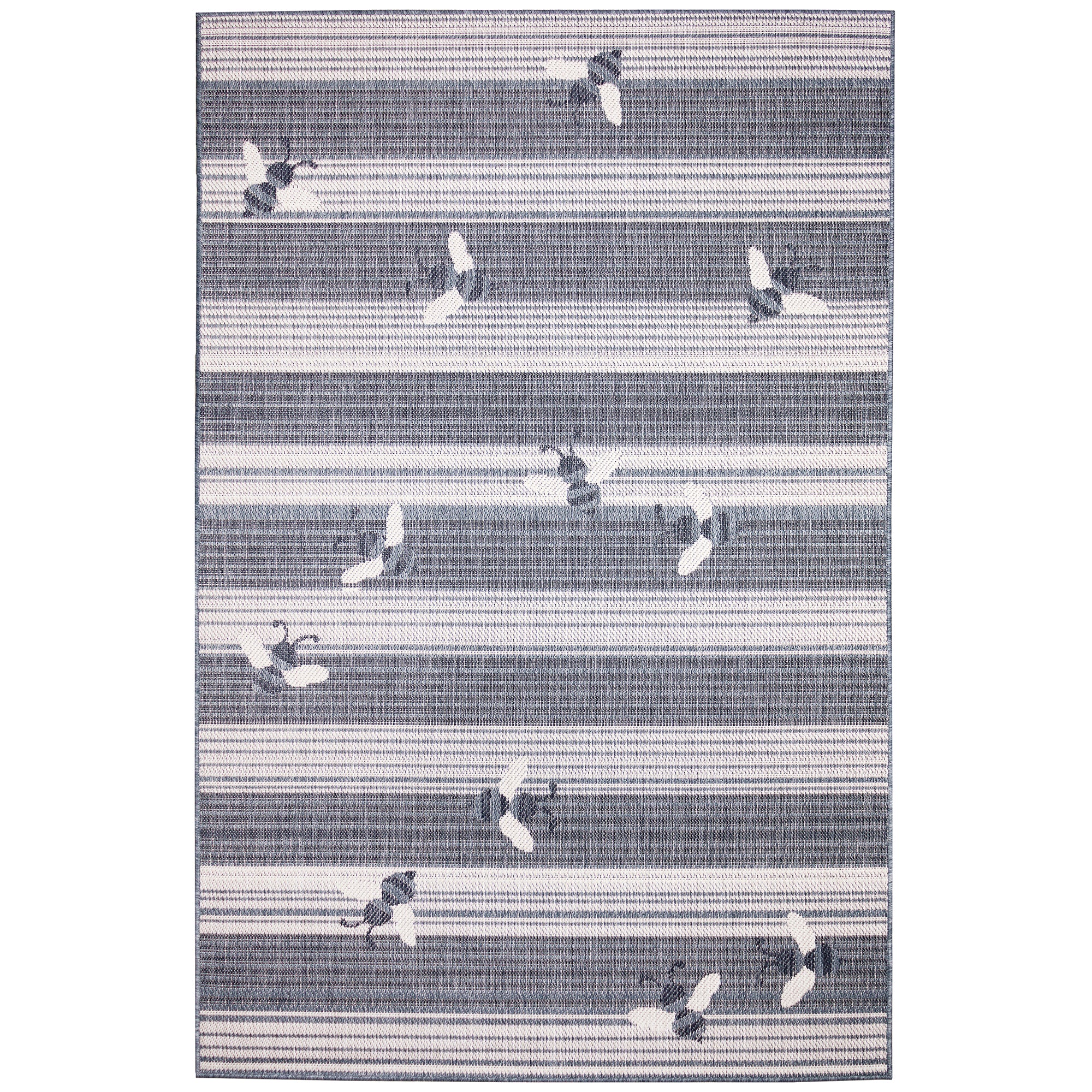 - Feature 7: A casual stripe rug made whimsical with tonal buzzing bees in the foreground