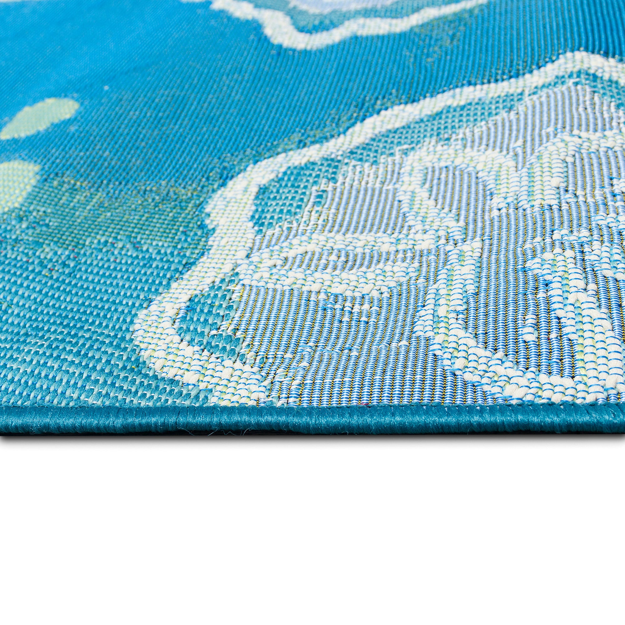- Feature 10: This design features vibrant blue, aqua and navy colors accented with white