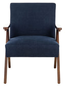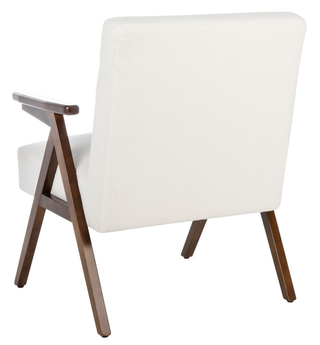 Discover Timeless Comfort With The Emyr Arm Chair — A Refined Blend Of Mid-Century Silhouette And Modern Sensibility. Its Warm Walnut A-Frame Base And Plush White Linen Cushions Create An Inviting Focal Point For Living Rooms, Reading Nooks, Or Lounge Areas, Delivering Both Style And Relaxation Without Sacrificing Durability.