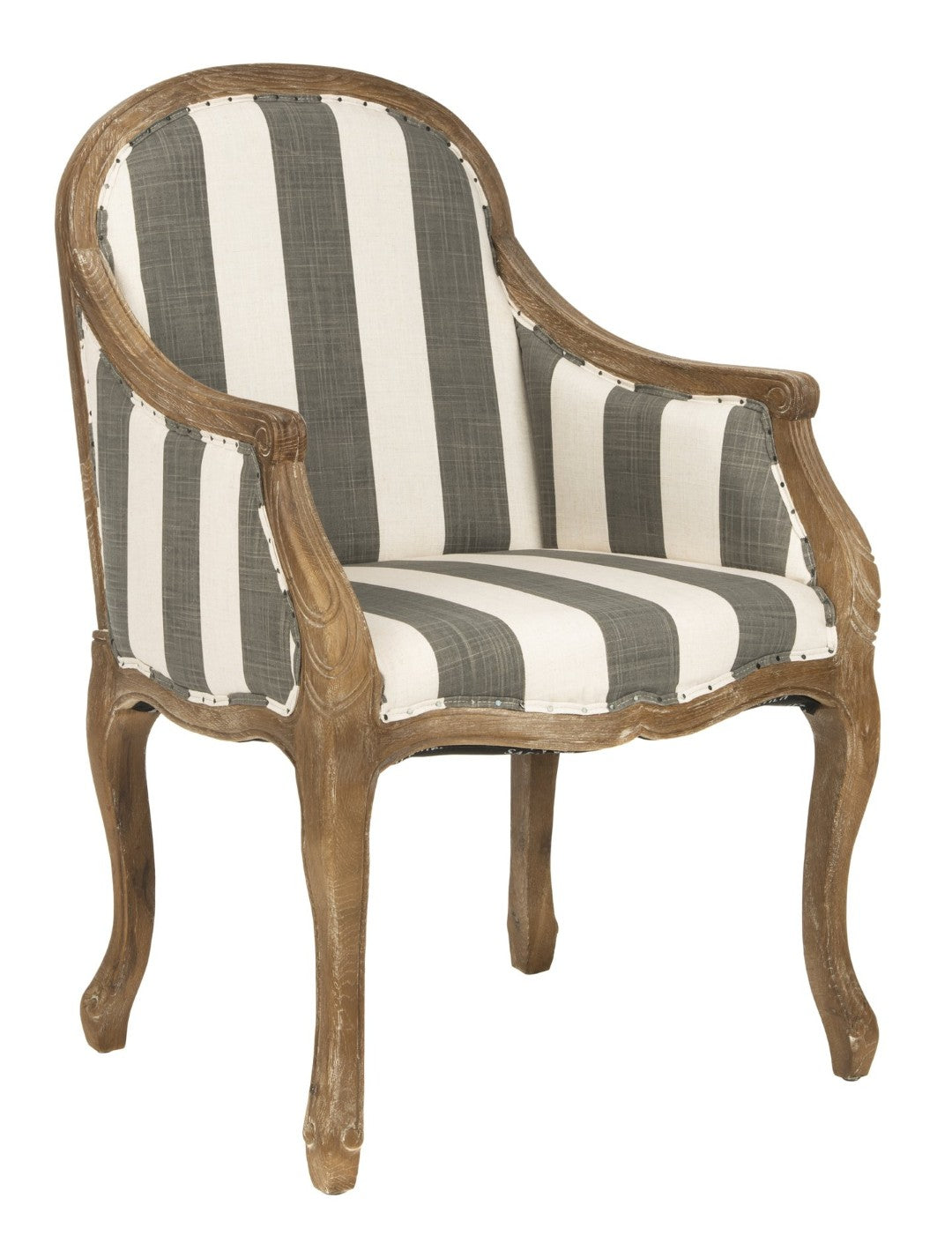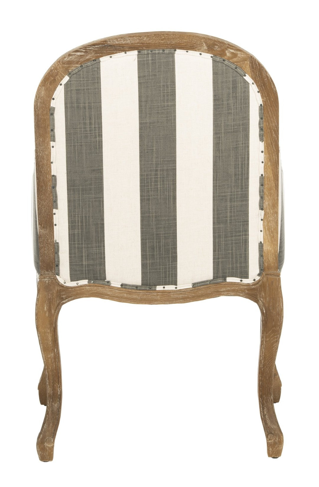 Bring Timeless French Elegance Into Your Living Space With The Esther Arm Chair. Inspired By Classic Louis Xv Bergère Silhouettes, This Chair Pairs Graceful Curves And A Refined Oak Frame With Contemporary Grey-And-Off-White Striped Linen Upholstery And Flat Black Nail-Head Trim For A Sophisticated, Versatile Accent That Complements Both Traditional And Modern Interiors.