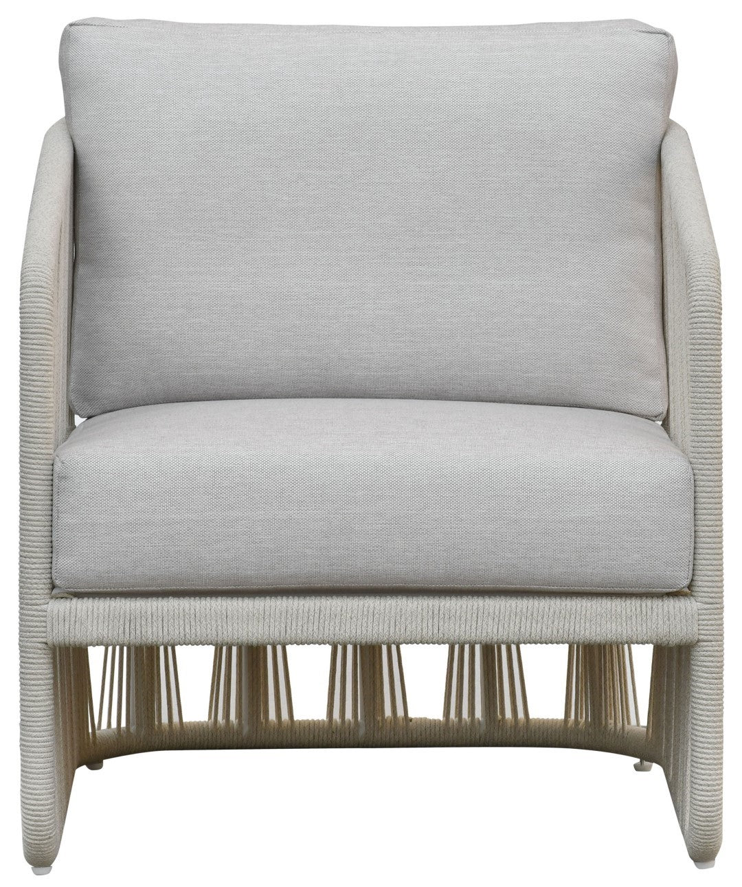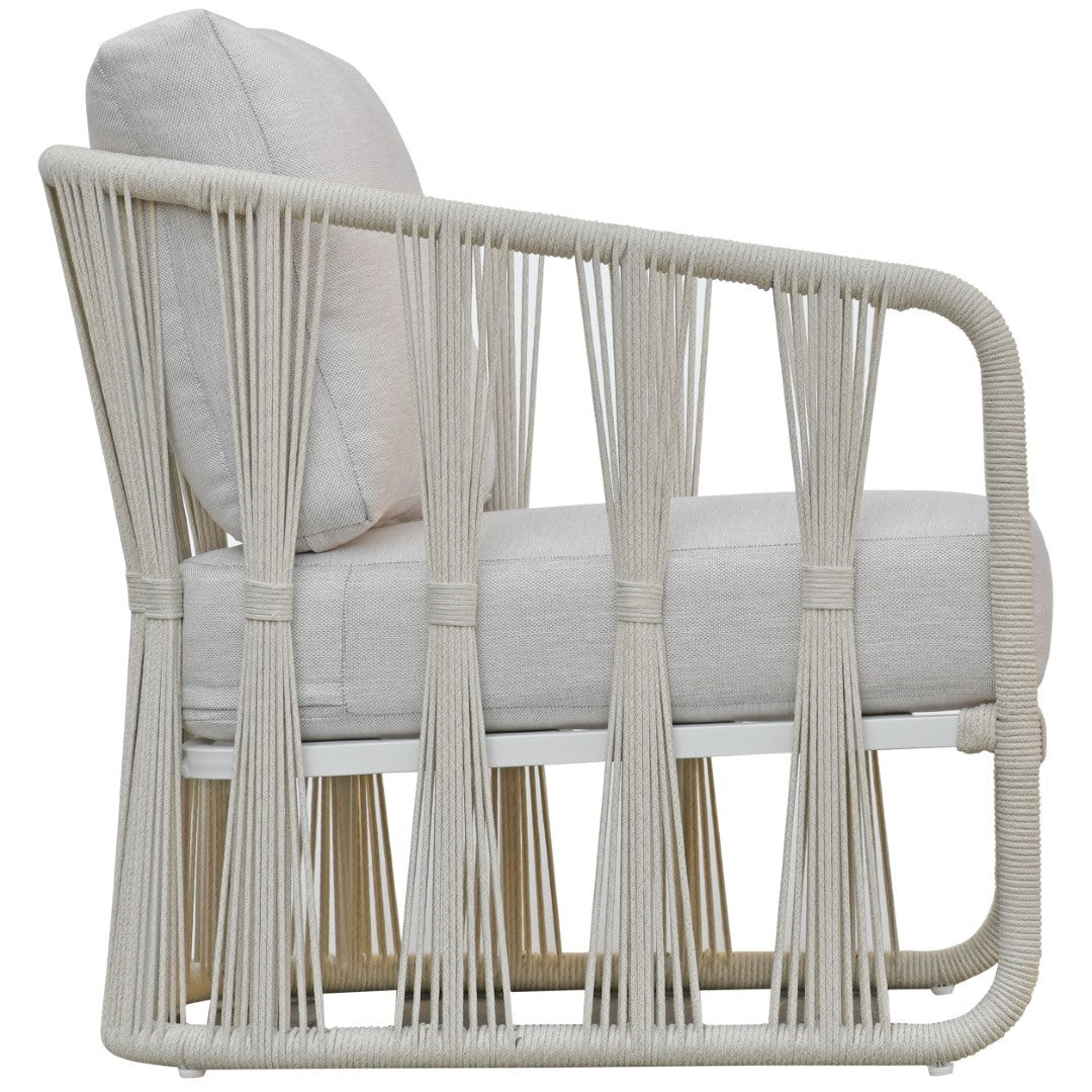 The sleek aluminum frame offers a modern touch, while the expertly crafted rope detailing adds a unique flair, making it a standout piece for your patio or garden. Soft fabric cushions filled with foam ensure comfort as you relax and unwind in your outdoor sanctuary.