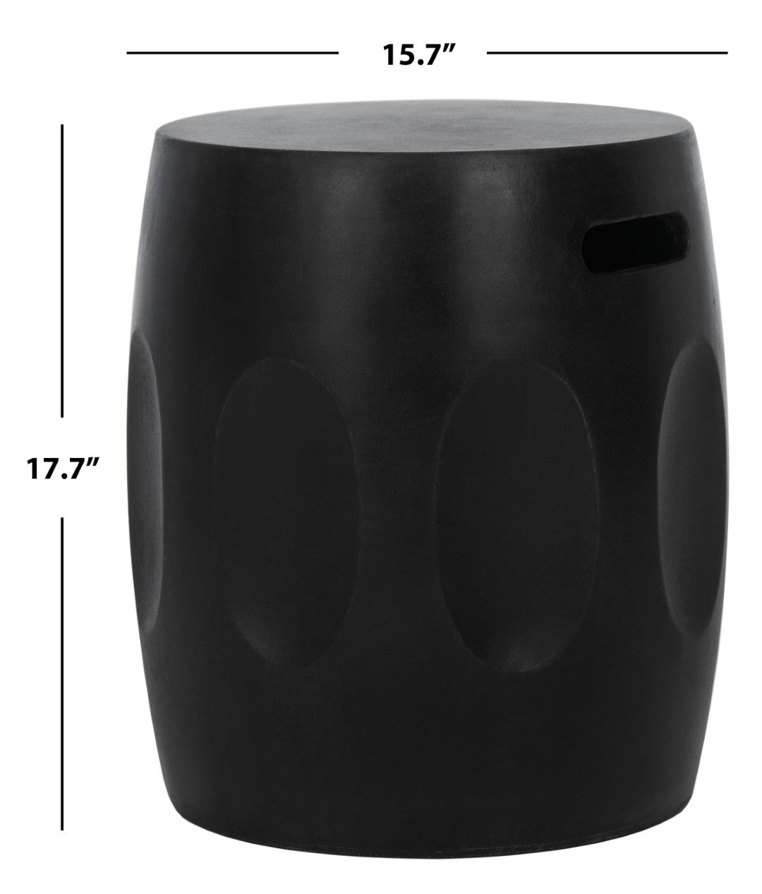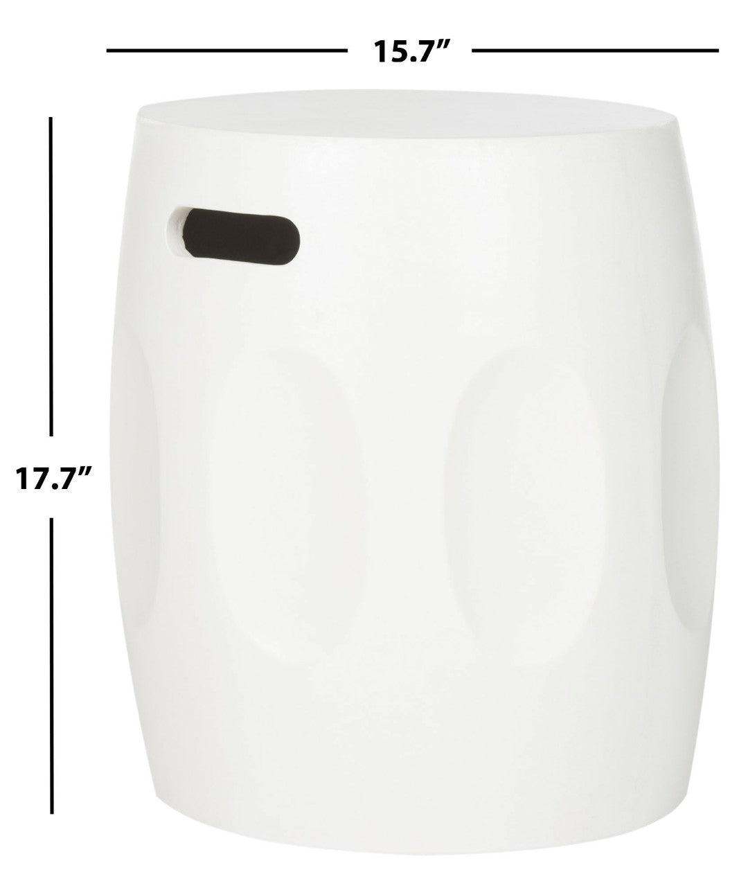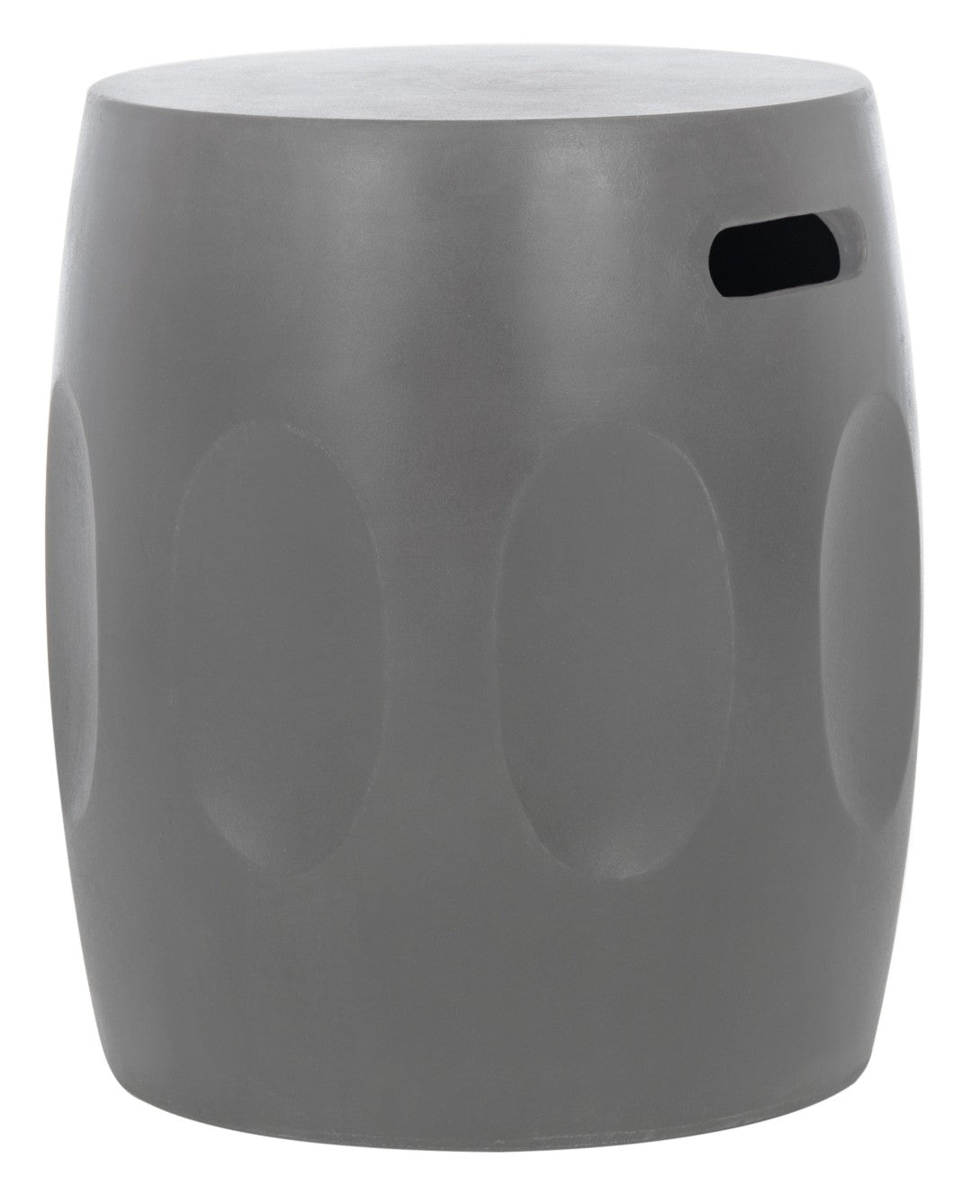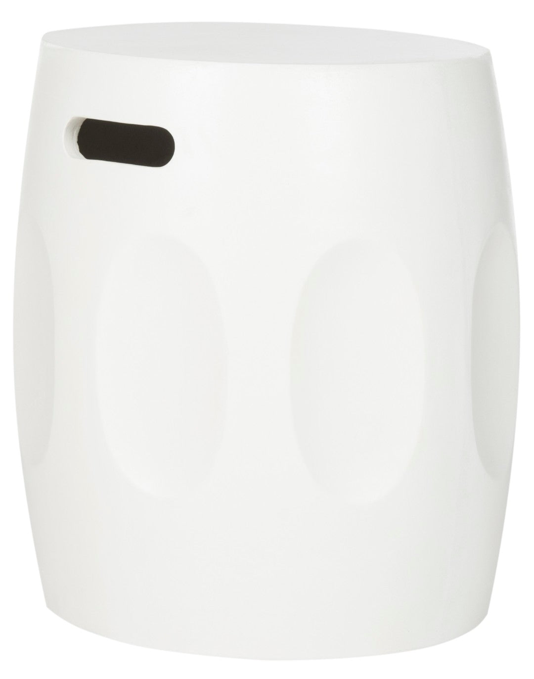 - Design: Barrel-style silhouette with subtle sculptural detailing that works as a stool, side table, or decorative accent