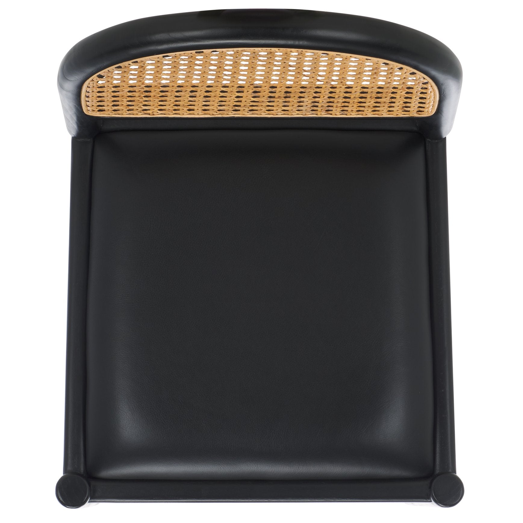 - Upholstered in top grain black leather, renowned for its durability and luxurious feel.