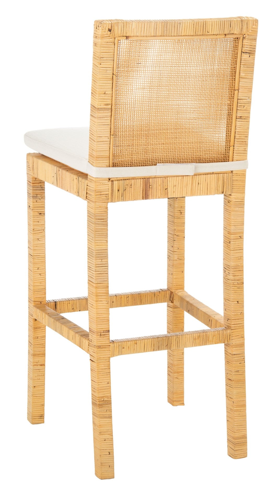 Bring Relaxed Coastal Charm To Your Kitchen Or Bar Area With This Elegant Cane Bar Stool. The Natural Cane Frame And Warm Mango Wood Tones Create An Airy, Tropical Look, While The Plush White Cushion Provides Comfortable Seating For Casual Meals And Entertaining.