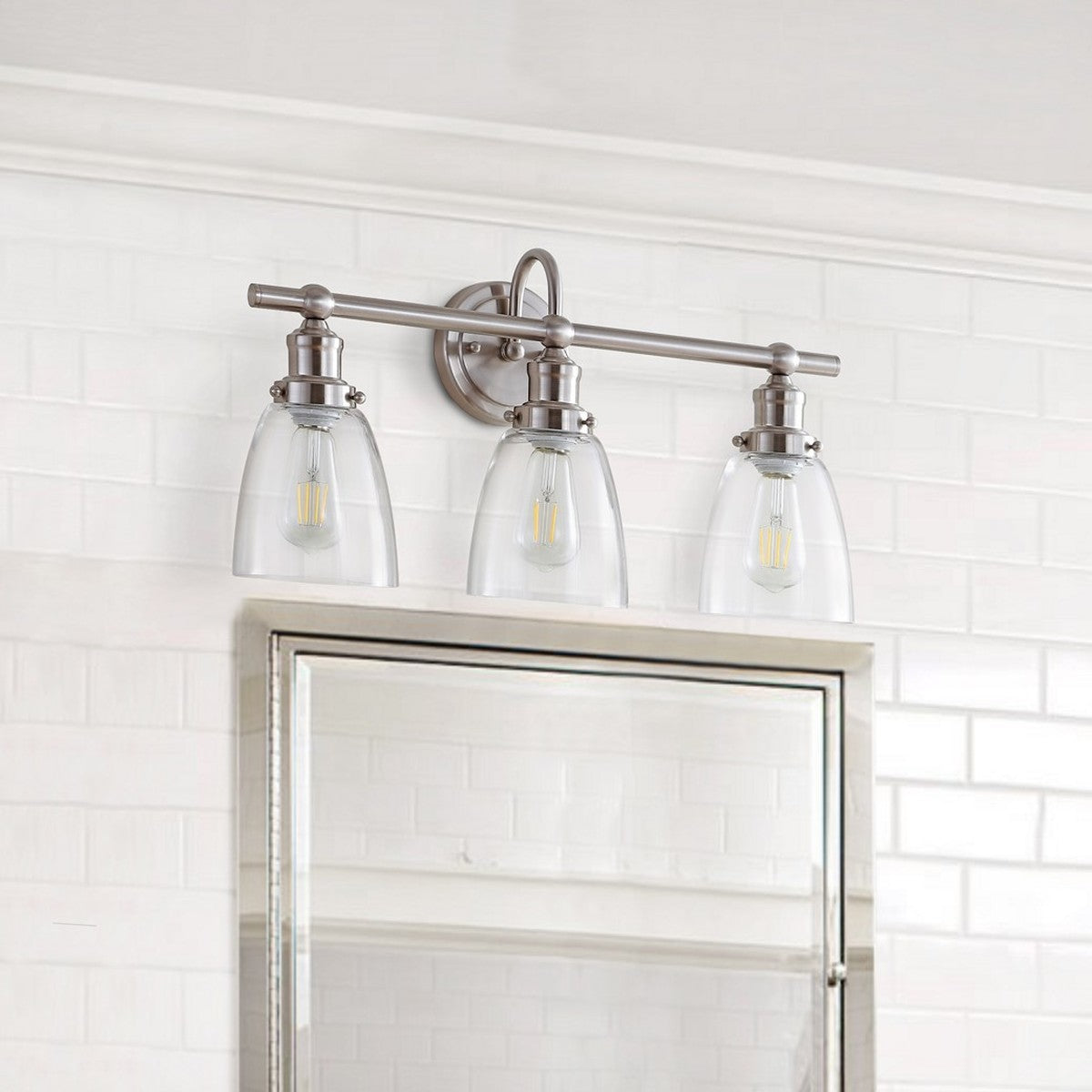 - Lamp Color: Brush Nickel/Clear