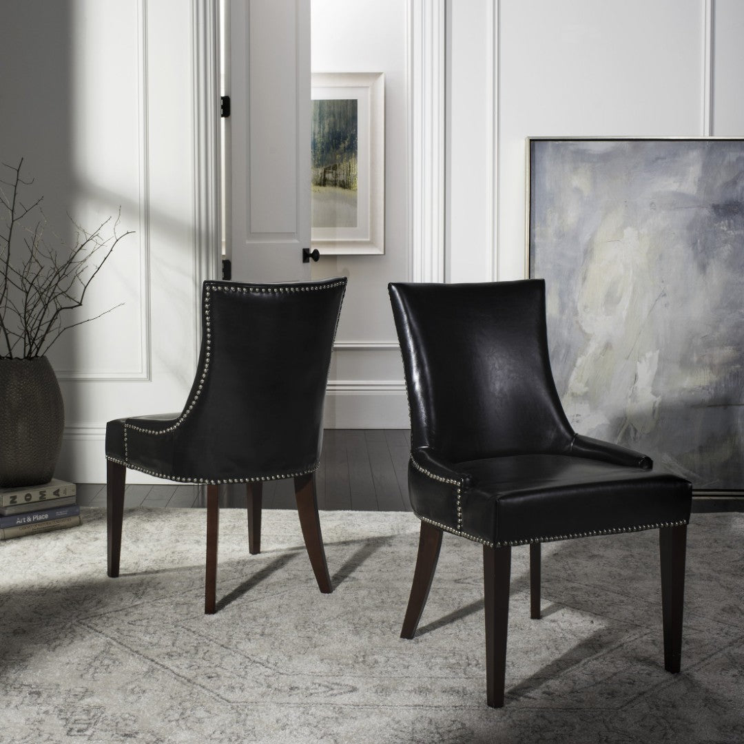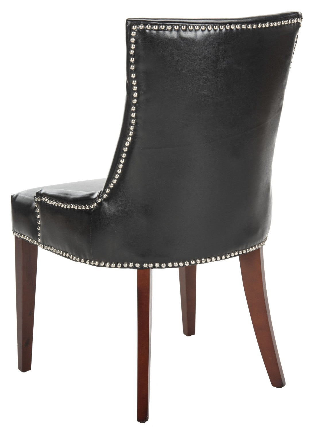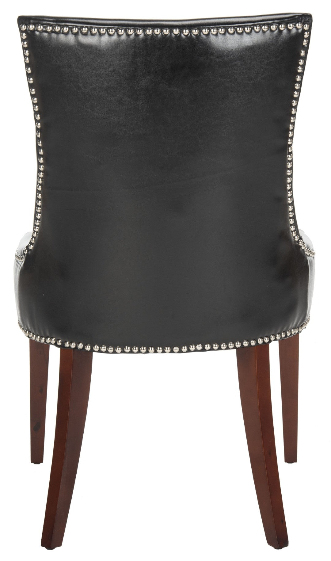 The Becca Dining Chair Blends Refined Elegance With Comfortable, Everyday Usability—Ideal For Country Homes, City Apartments, Or Formal Dining Rooms. Its High Back And Gently Sloped Arms Create A Supportive Silhouette, While Black Leather Upholstery And Silver Nail-Head Trim Add A Tailored, Contemporary Touch. Cherry Mahogany–Finished Birch Legs Provide Sturdy Support And A Warm Contrast To The Sleek Black Seat.