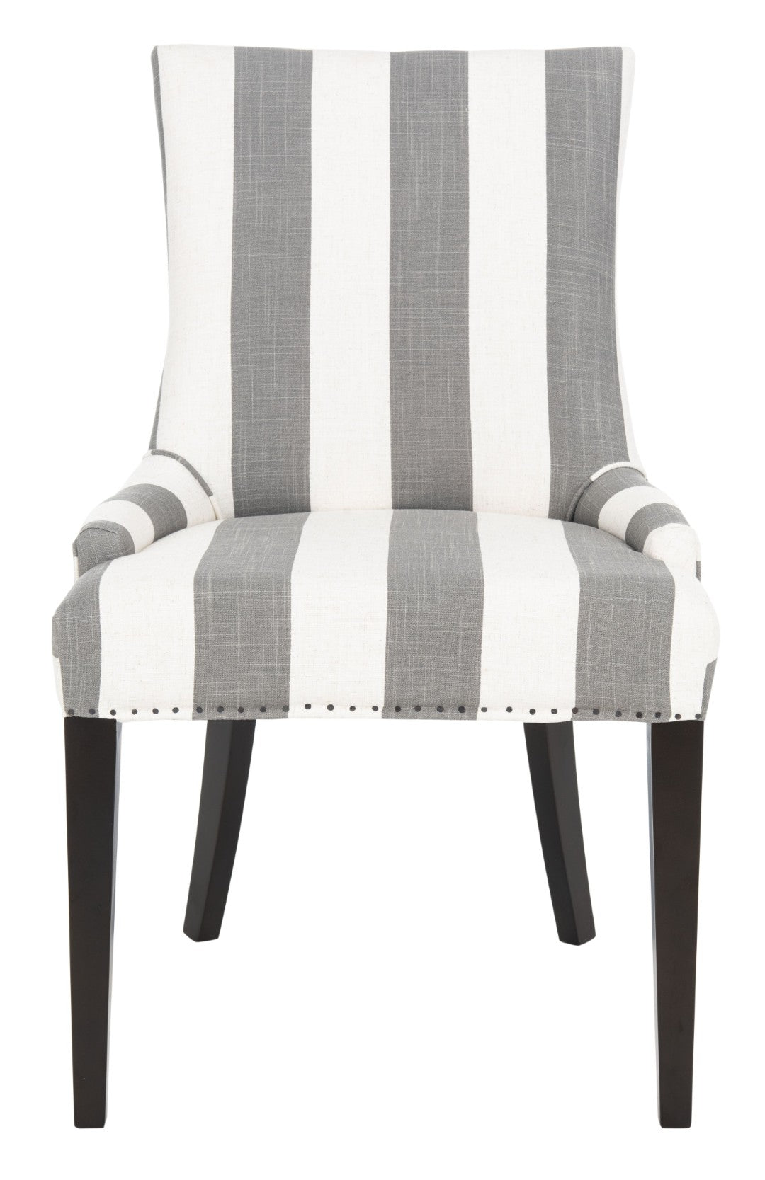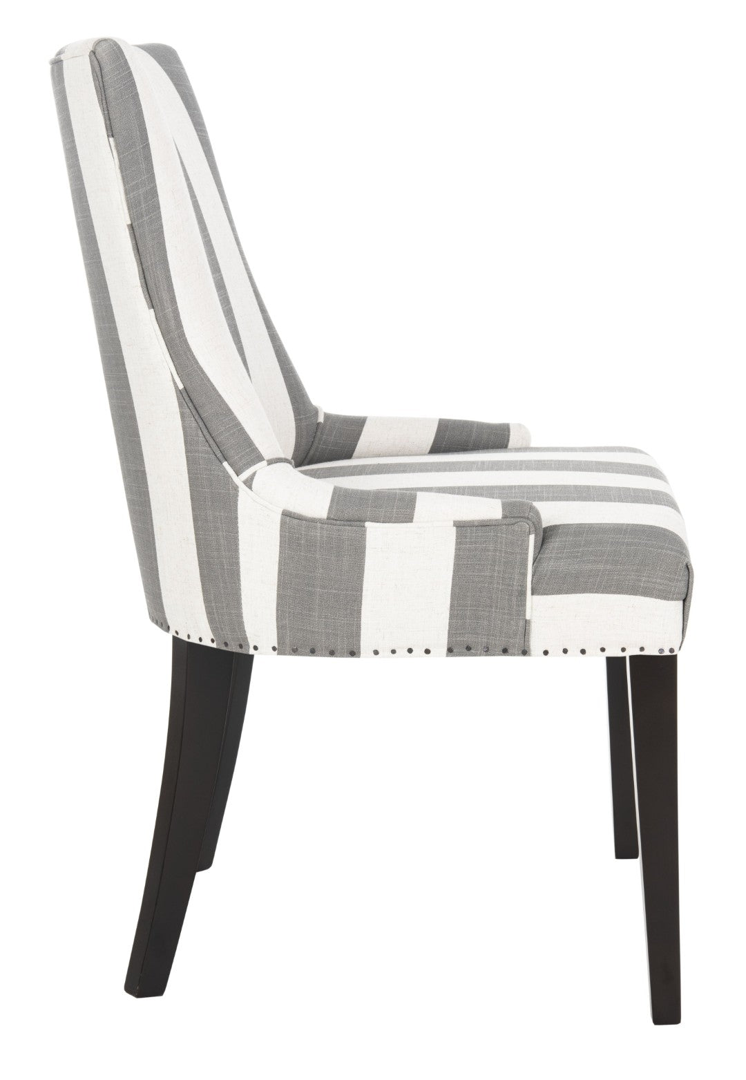 Elevate Your Dining Space With The Becca Chair — A Refined Blend Of Classic Tailoring And Relaxed Elegance. Its High Back And Gently Sloped Arms Offer Confident Support And An Inviting Silhouette, While The Grey-And-Bone Stripe Upholstery And Exposed Flat Nail-Head Trim Add Textured Detail That Suits Country Cottages, Urban Apartments, Or Formal Dining Rooms Alike. Crafted With Solid Birch Legs Finished In Rich Espresso, This Chair Balances Style With Durable Construction For Everyday Use.