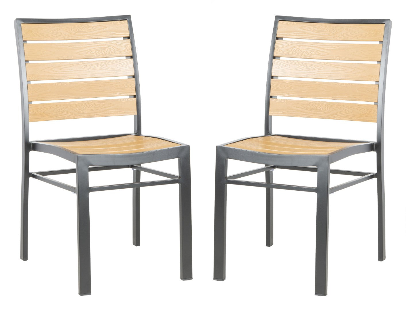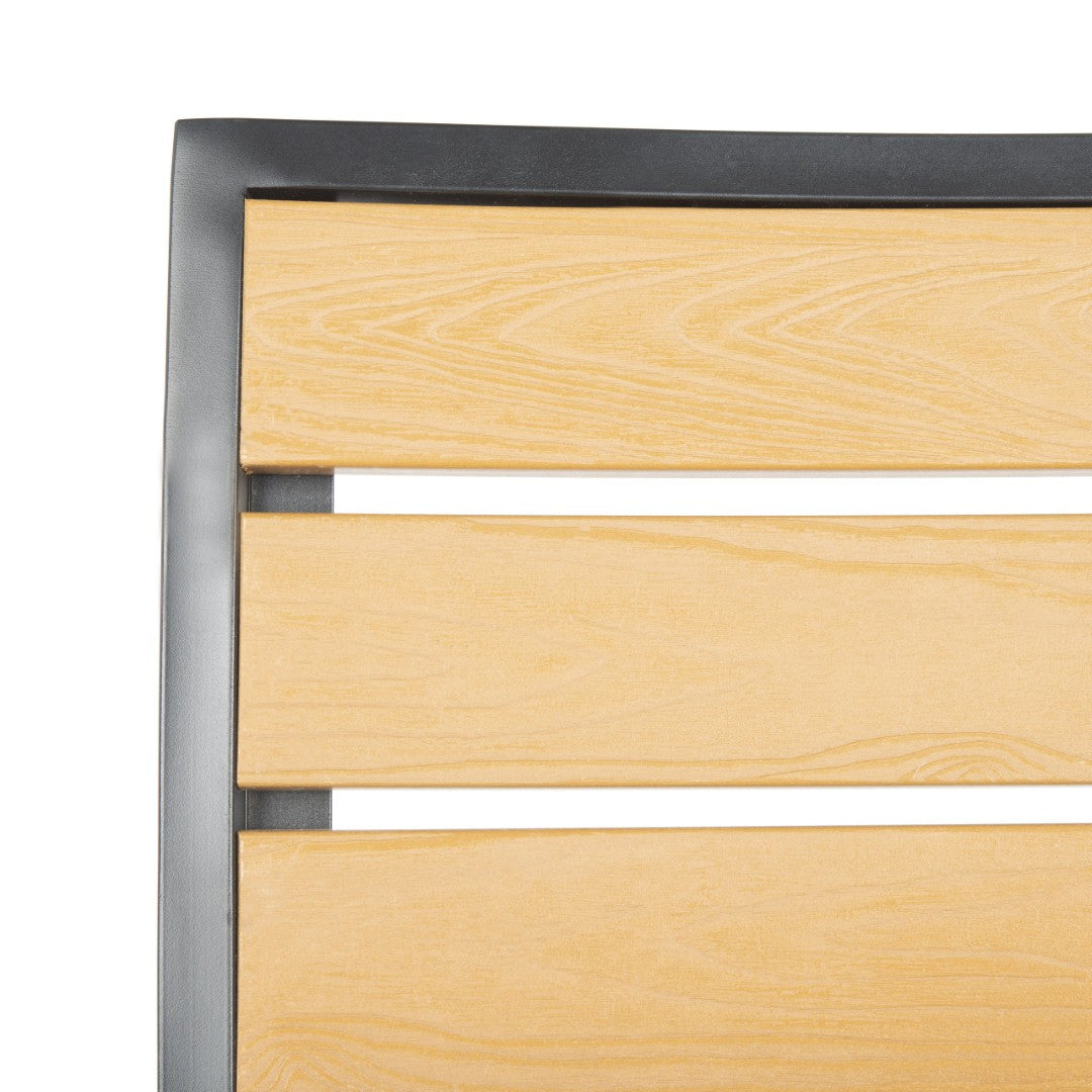 Bring effortless style and practical comfort to your outdoor living area with this versatile stackable chair. Designed for transitional and traditional patios, its sleek black frame paired with warm light-brown wood-look panels offers a neutral, timeless aesthetic that blends with a wide range of décor while providing durable, low-maintenance seating for everyday use or entertaining.