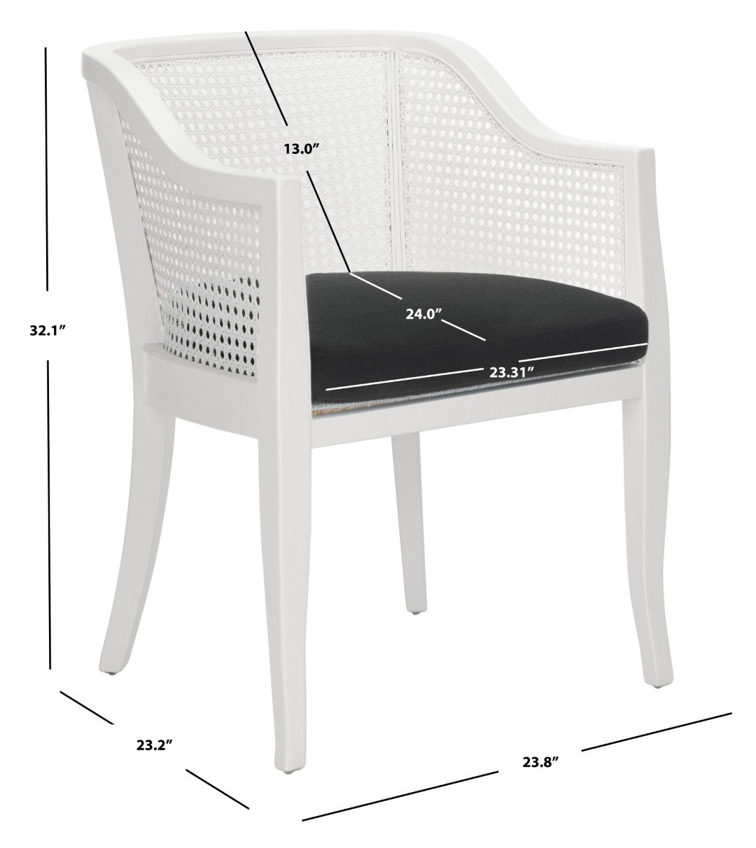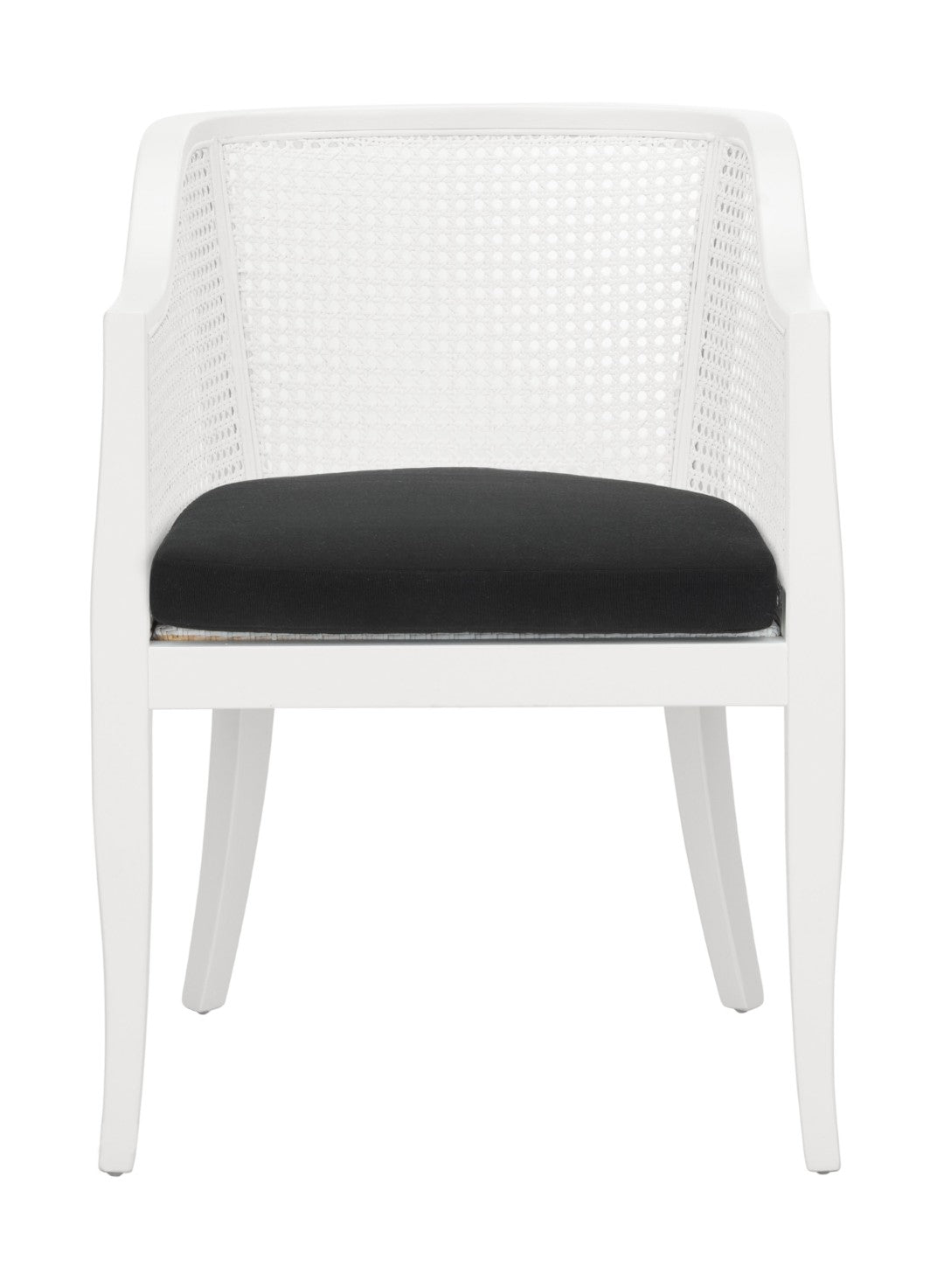 Bright, Contemporary, And Comfortably Inviting, This Dining Chair Blends Classic Craftsmanship With Modern Accents To Elevate Any Dining Space. Clean White Elm Frames Pair With Hand-Woven Cane Detailing For A Breezy, Sophisticated Look, While The Plush Black Cushion Adds Visual Contrast And Lasting Comfort For Long Meals And Lively Conversation.