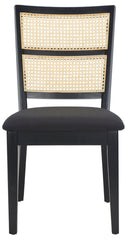 Bring timeless French-country charm to your dining space with the Toril Dining Chair—now refreshed for contemporary interiors. Its striking black frame and upholstery contrast beautifully with a natural rattan back, creating an elegant, versatile silhouette that complements both casual and formal dining settings. Sold in sets of two, these chairs combine classic craftsmanship with everyday comfort.