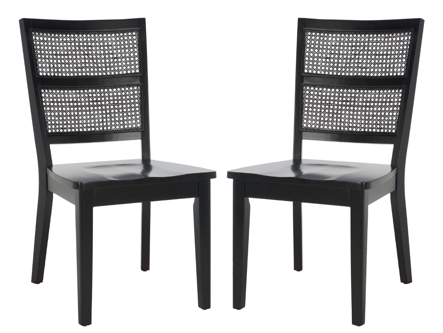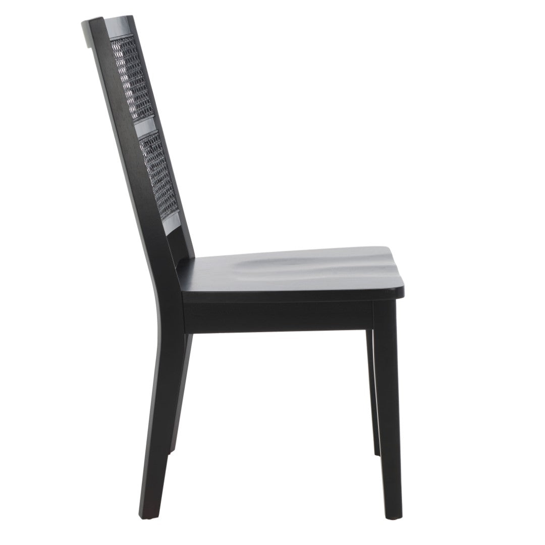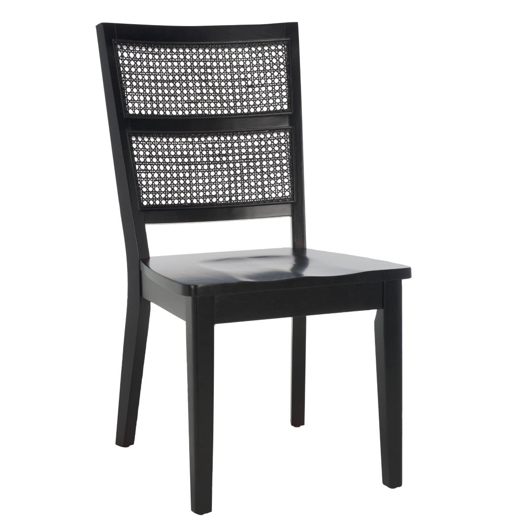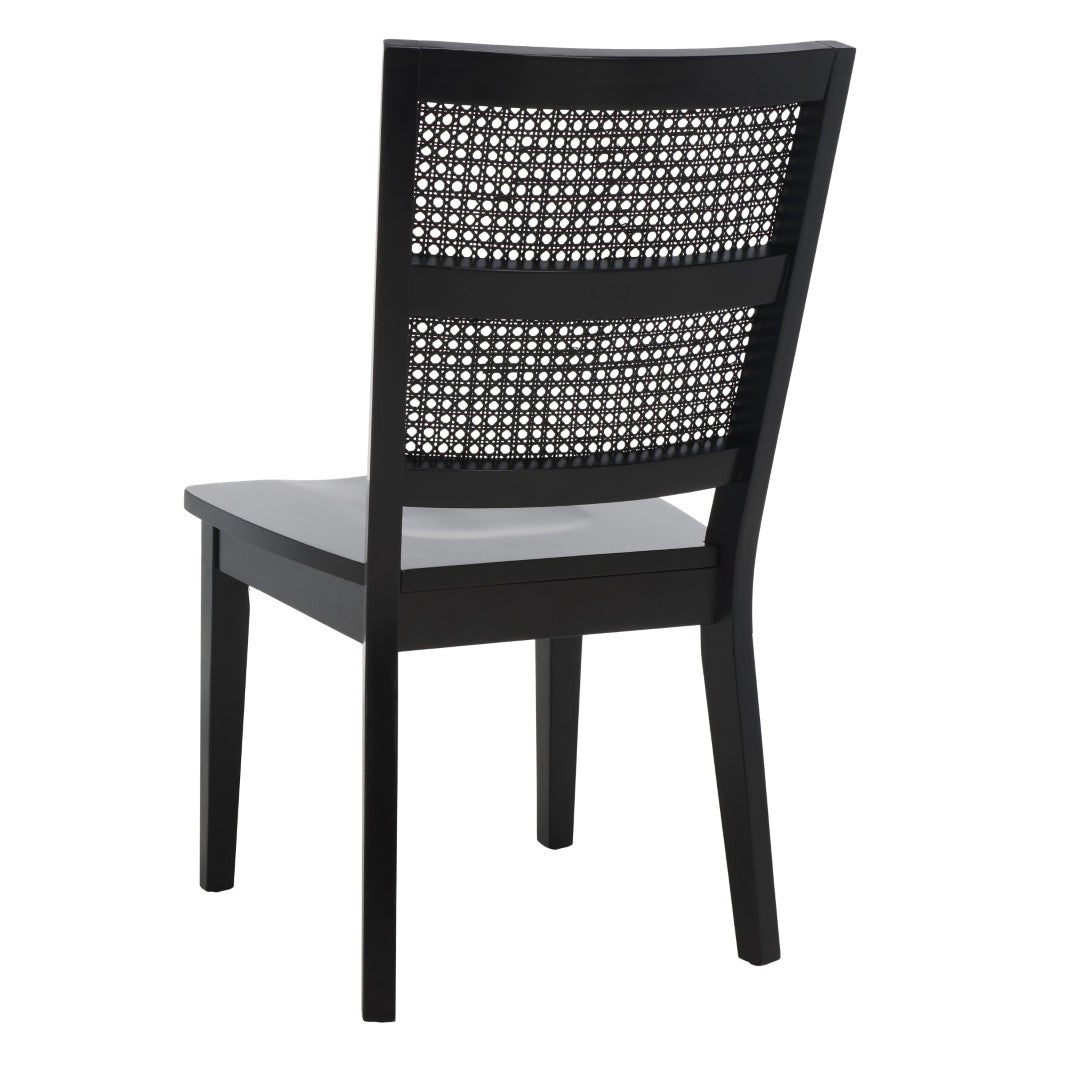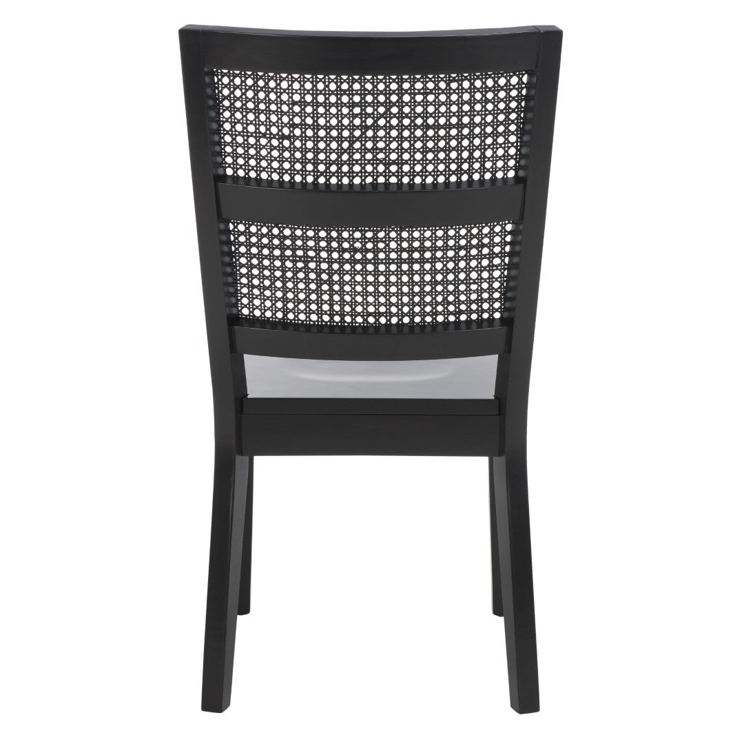 Refresh your dining space with a modern take on French country style. This chic dining chair pairs a classic jet-black frame with a stylish rattan back and a sleek black wood seat, creating a versatile silhouette that complements contemporary and traditional interiors alike. Sold in sets of two, the Toril chair offers comfortable seating and durable construction for everyday use or special gatherings.