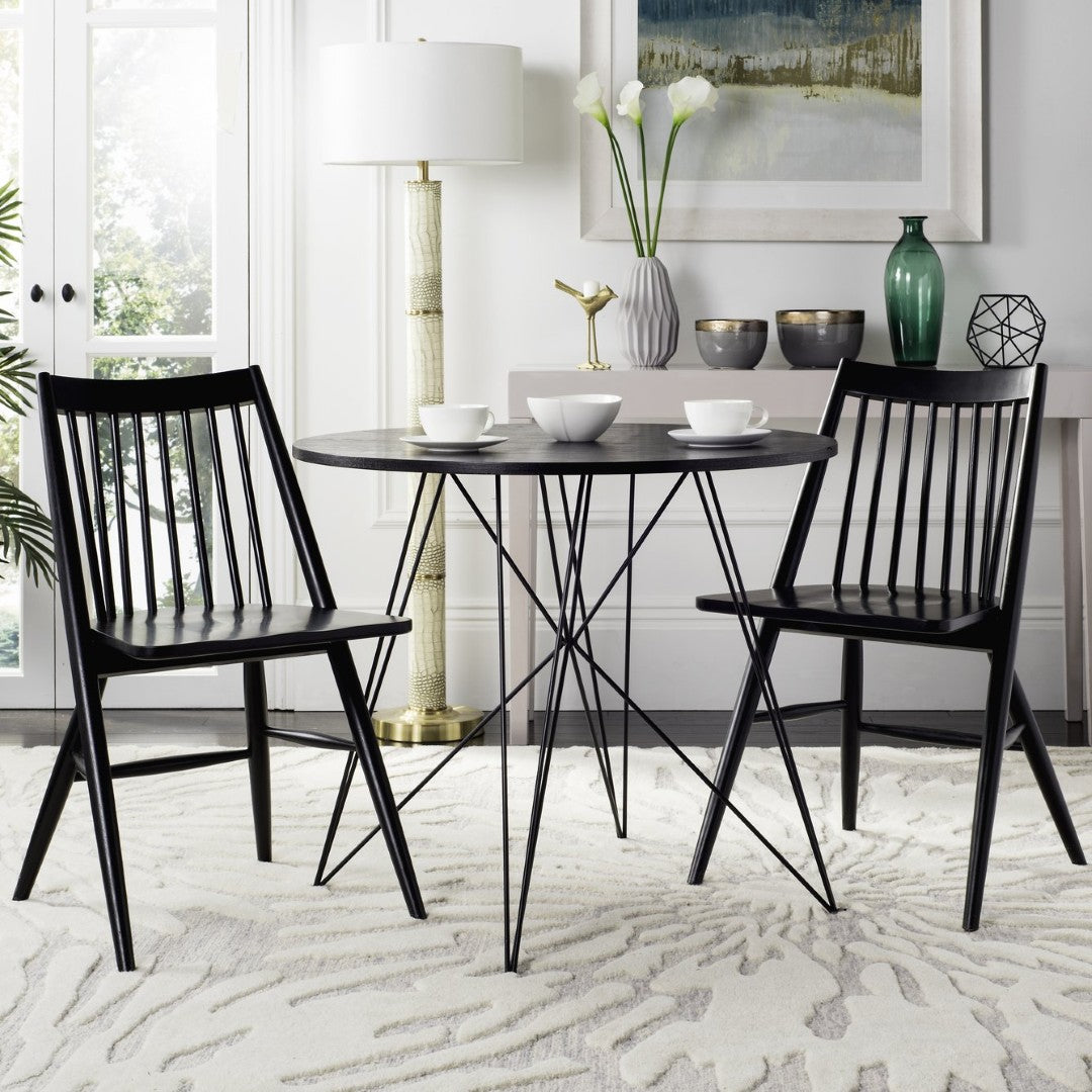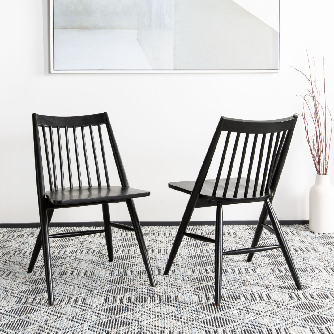 Refresh your dining space with the Wren Dining Chair — a refined take on the classic spindle-back silhouette that blends traditional charm with modern simplicity. Finished in sleek black and crafted from durable rubberwood, this chair offers clean lines, comfortable seating, and versatile styling to suit contemporary and transitional interiors alike. Sold in sets of two for easy outfitting.