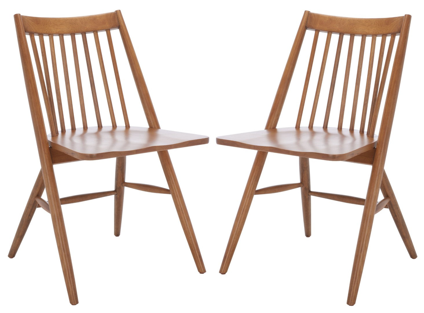 A refined take on the classic spindle-back silhouette, this Wren dining chair blends timeless craftsmanship with a clean, contemporary profile. Its warm walnut finish and understated form make it a versatile addition for modern, transitional, or traditional dining spaces. Designed for both visual appeal and everyday comfort, the chair is sold in sets of two and crafted from solid wood for lasting durability.
