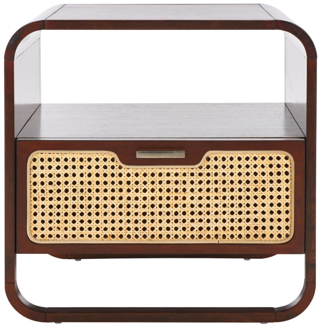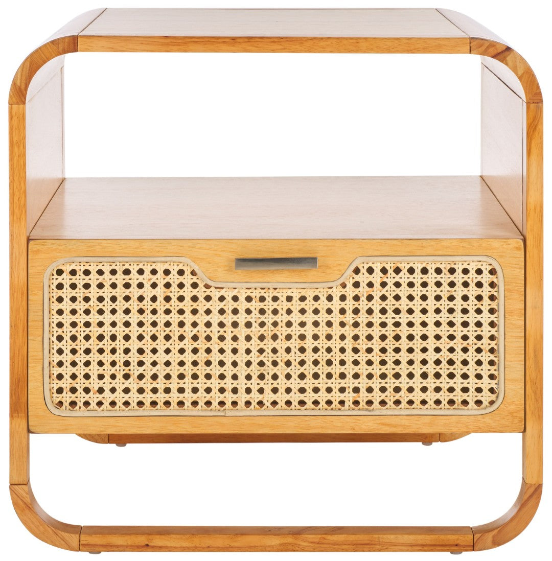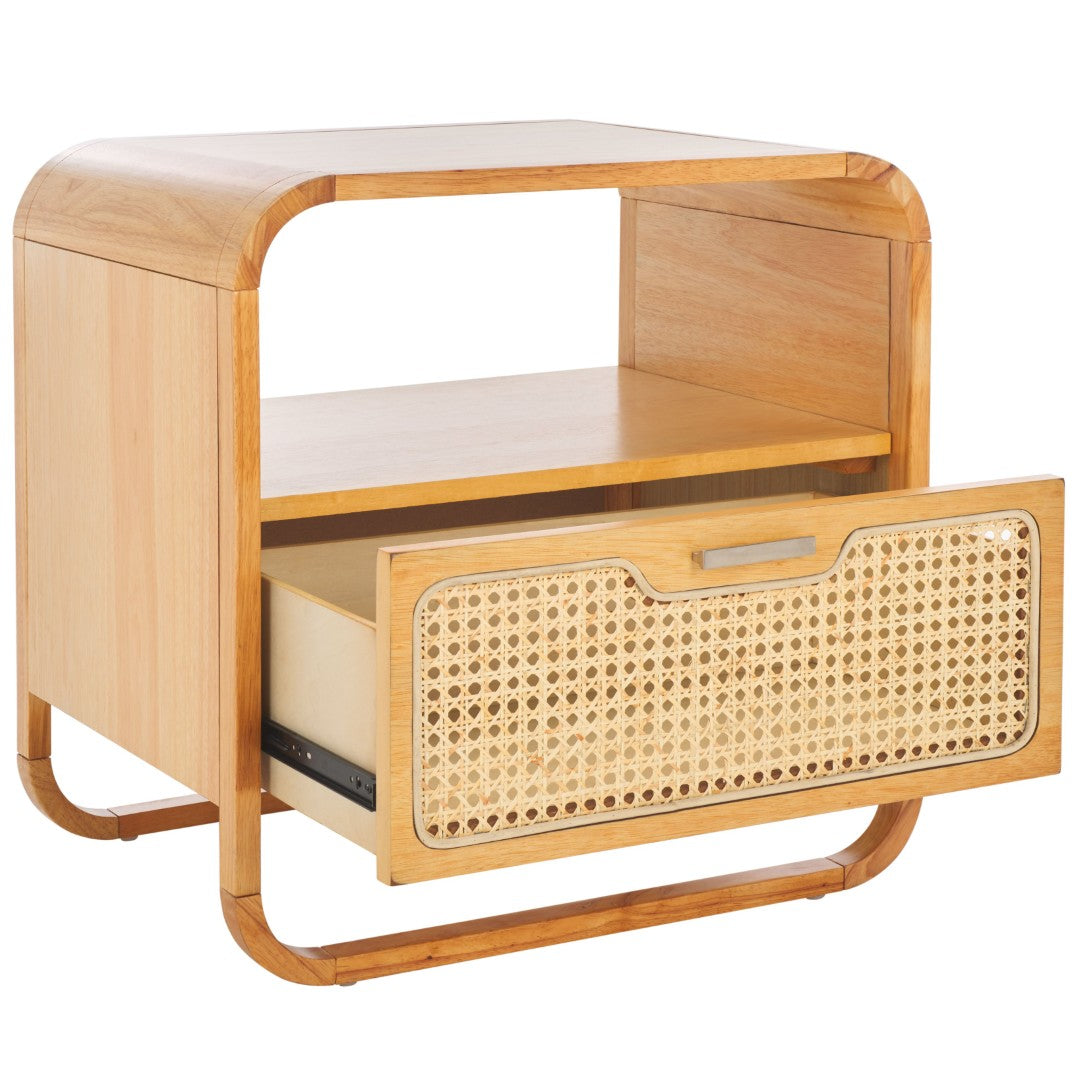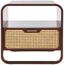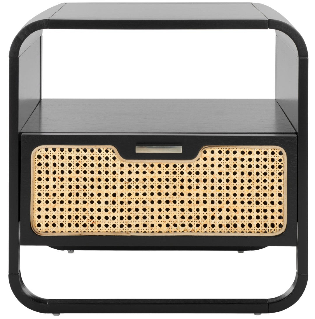 Bring Warmth And Modern Contrast To Your Bedroom With This Chic Nightstand That Pairs Sleek Black Finishes With Natural Rattan Texture. Designed For Everyday Use, It Offers Practical Storage And An Airy Silhouette That Complements Coastal, Boho, Or Contemporary Interiors.