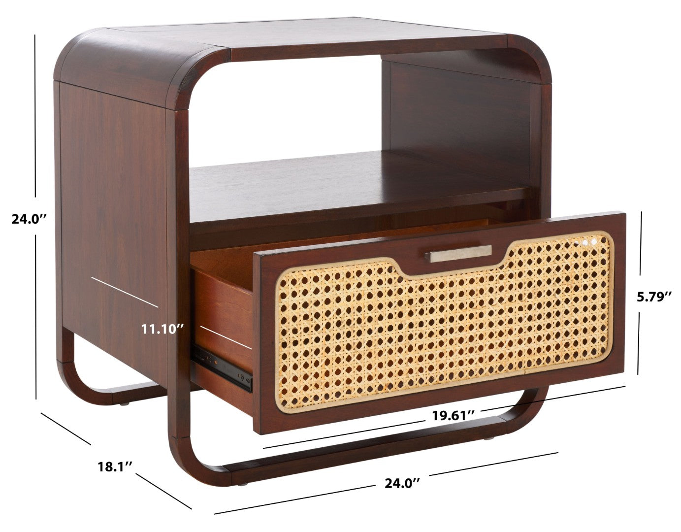 - Storage: One Roomy Drawer With Tailored Pull Plus An Open Lower Shelf—Ideal For A Lamp, Books, Or Bedside Essentials
