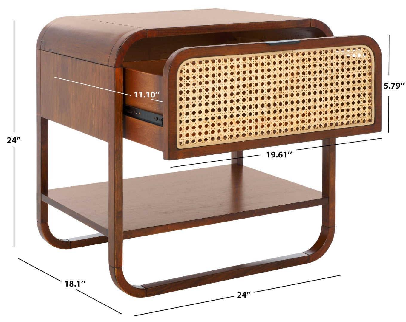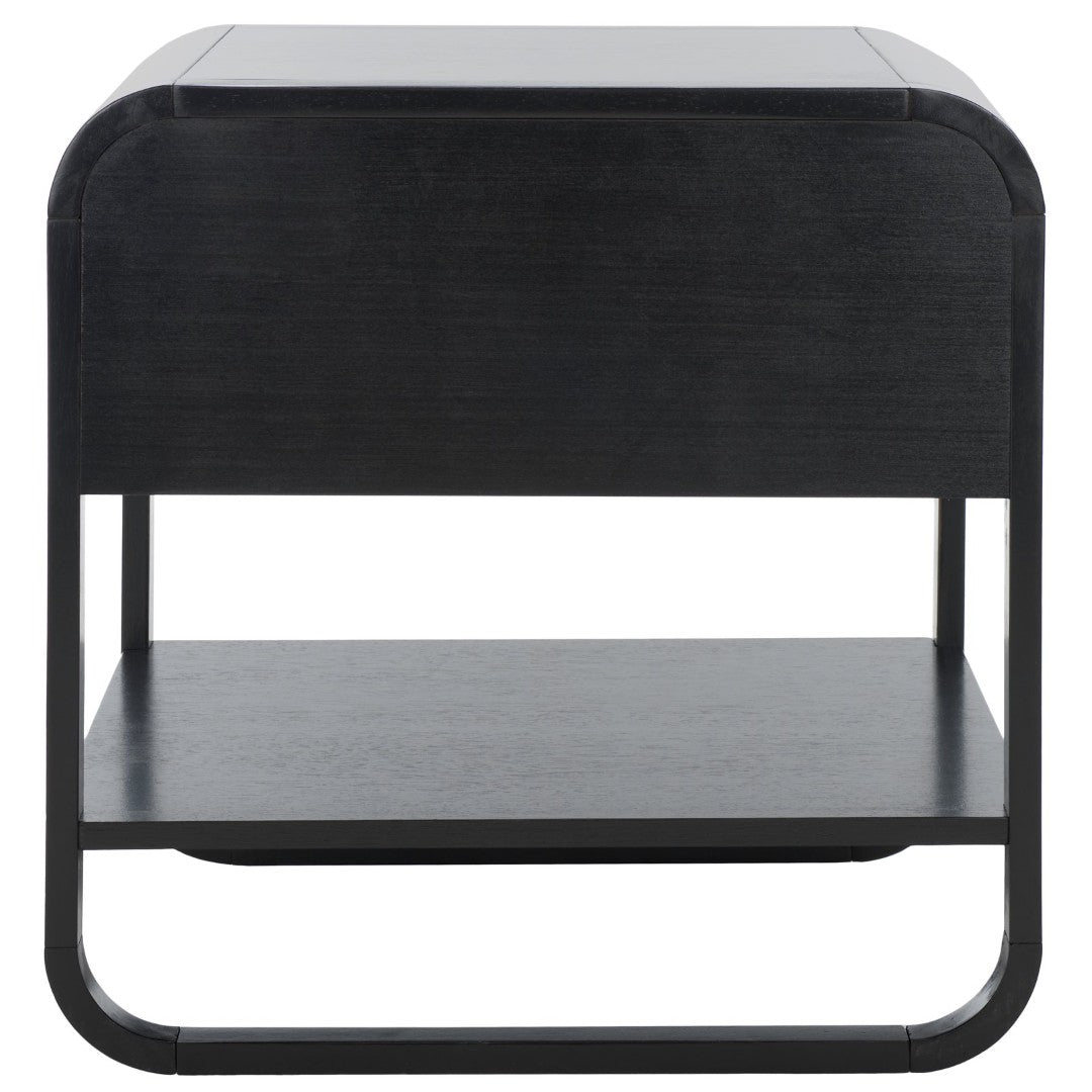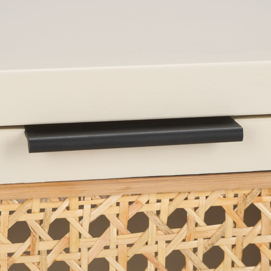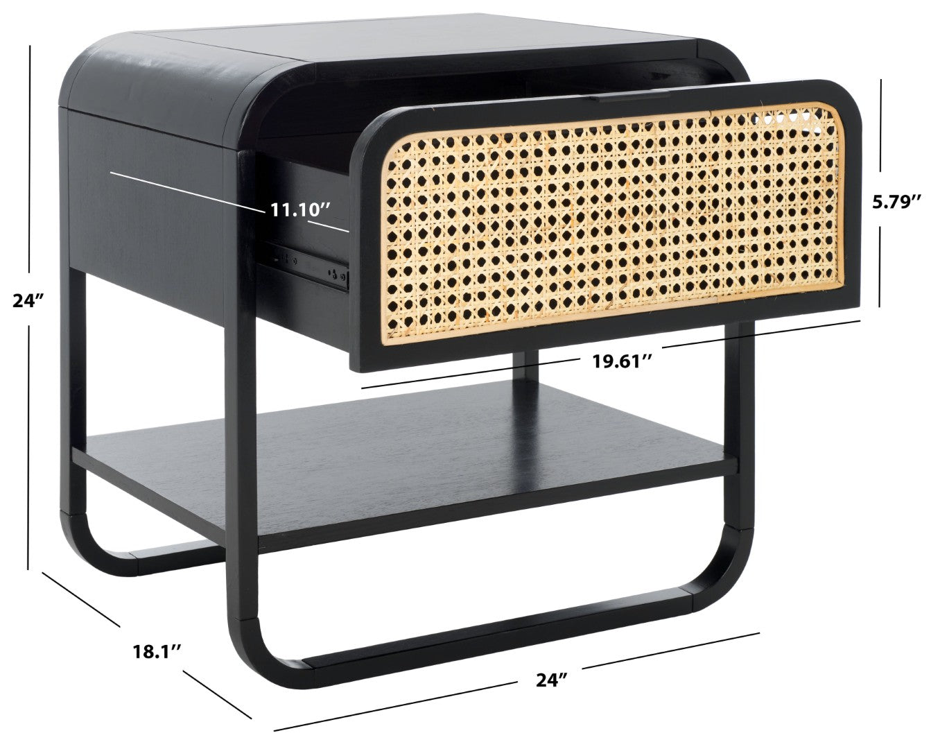 Add A Relaxed, Refined Touch To Your Bedroom With This Chic Nightstand That Blends Sculpted Solid-Wood Construction And Breezy Woven Rattan Panels. Its Contrasting Textures And Smooth Black Finish Create A Modern Yet Warm Aesthetic, While The Curved Details And Tailored Drawer Pull Lend An Inviting, Handcrafted Feel. Designed For Both Style And Function, It Offers Accessible Storage And A Compact Footprint Ideal For Bedside Placement.