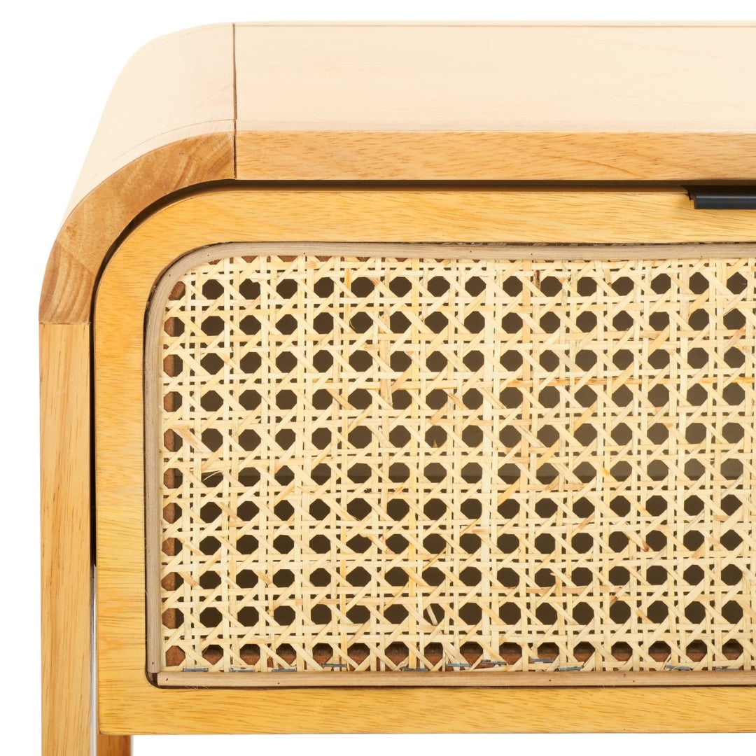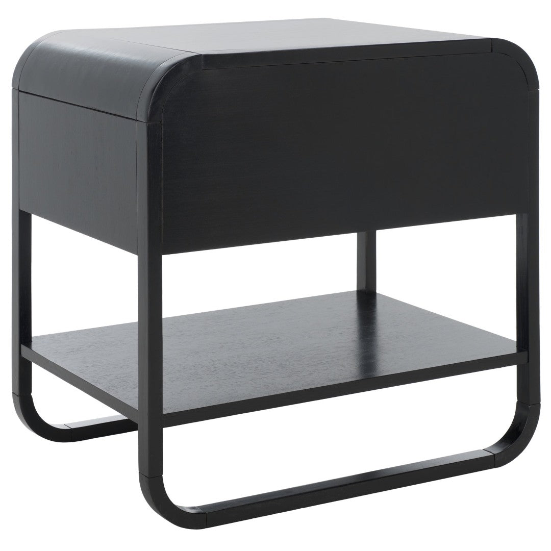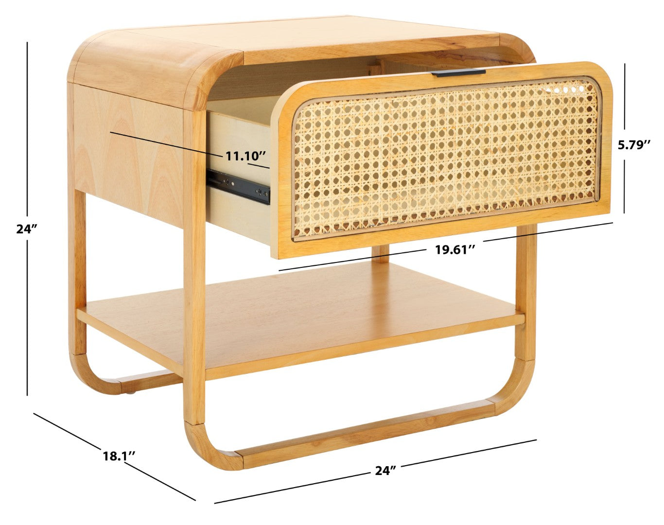 Add A Relaxed, Refined Touch To Your Bedroom With This Chic Nightstand That Blends Sculpted Solid-Wood Construction And Breezy Woven Rattan Panels. Its Contrasting Textures And Smooth Black Finish Create A Modern Yet Warm Aesthetic, While The Curved Details And Tailored Drawer Pull Lend An Inviting, Handcrafted Feel. Designed For Both Style And Function, It Offers Accessible Storage And A Compact Footprint Ideal For Bedside Placement.
