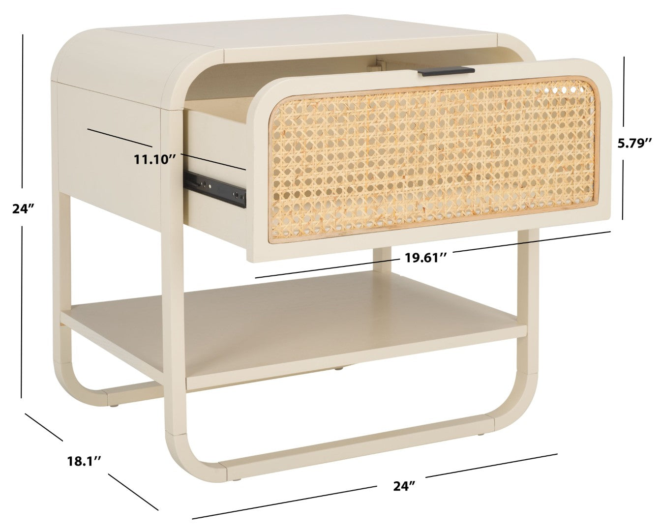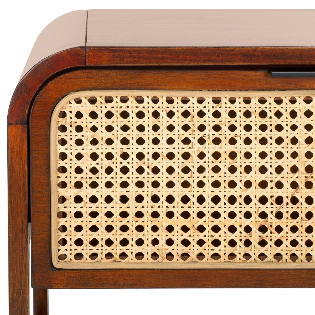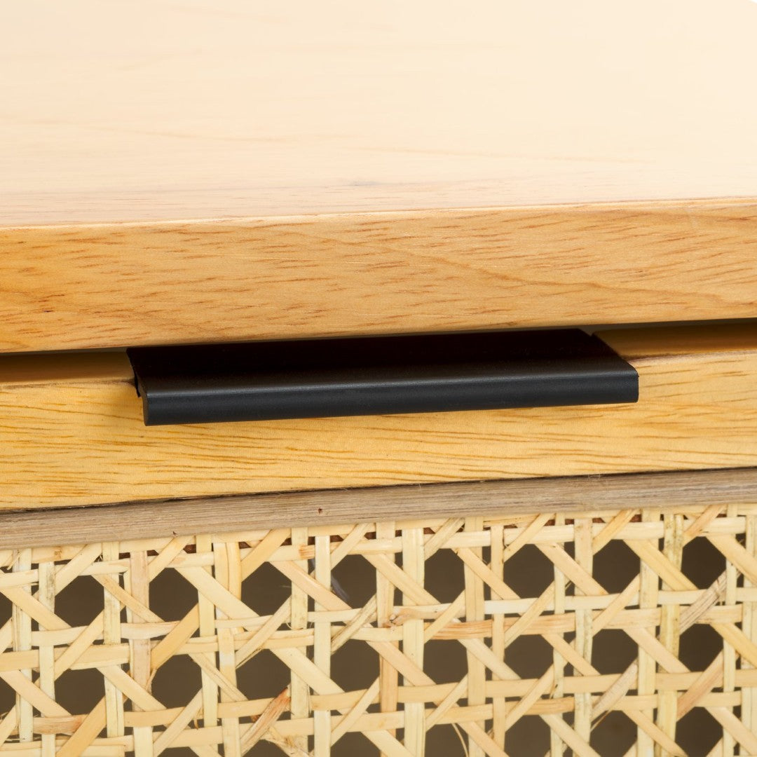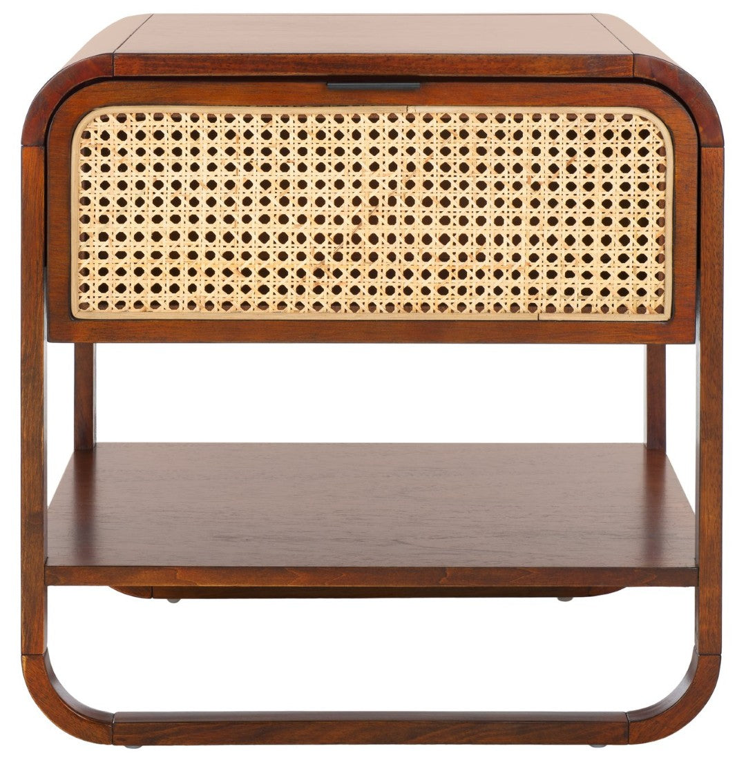 Add A Relaxed, Refined Touch To Your Bedroom With This Chic Nightstand That Blends Sculpted Solid-Wood Construction And Breezy Woven Rattan Panels. Its Contrasting Textures And Smooth Black Finish Create A Modern Yet Warm Aesthetic, While The Curved Details And Tailored Drawer Pull Lend An Inviting, Handcrafted Feel. Designed For Both Style And Function, It Offers Accessible Storage And A Compact Footprint Ideal For Bedside Placement.