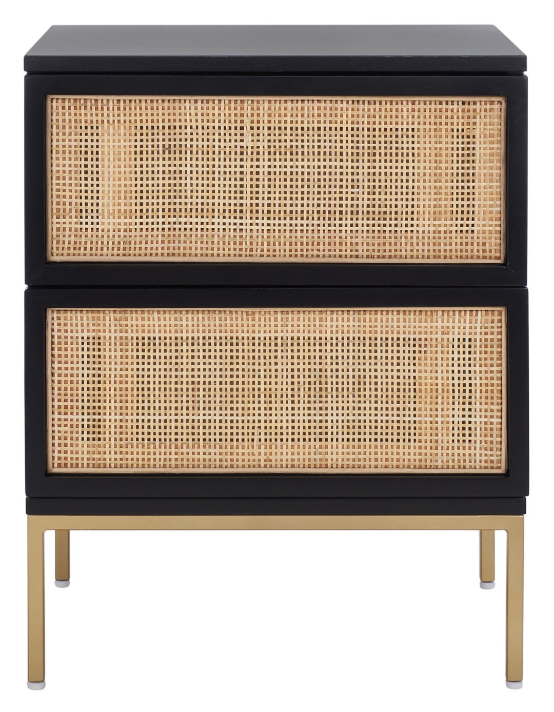 - Materials & Finish: Durable Mdf Construction In Black With Natural Rattan Detailing And Gold Legs For A Subtle Metallic Accent