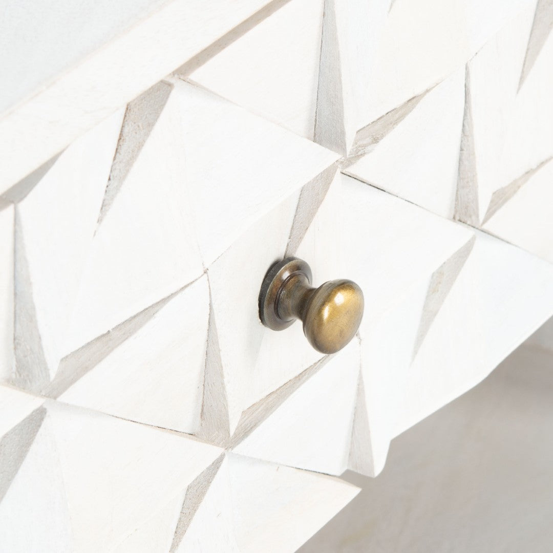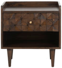 Elevate Your Bedroom Or Living Area With The Zinnia Nightstand — A Sculptural, Couture-Inspired Piece That Blends Artisanal Craftsmanship With Practical Storage. Finely Carved From Mango Wood And Finished In Deep Walnut, Its Faceted Details And Subtle Brass Pull Create A Refined Focal Point That Complements Both Modern And Transitional Interiors.