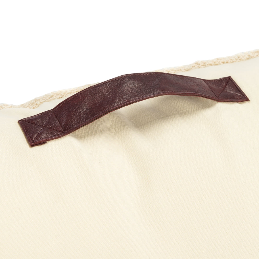 Pillows tend to flatten during transit, but these tips should help you get that pillow into its fluffiest shape quickly!Once unpacked, gently knead the pillow to help loosen the fibers. Throw the pillow in a dryer on a low tumble setting. The most important tip is to include a sock stuffed with a tennis ball to help "beat" the pillow into its fluffy form. Remove from the dryer, and proudly display your new piece of couch art!