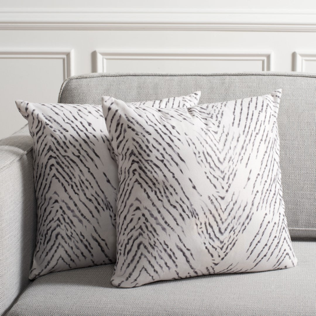 Make a classy and charming statement with our Zecora pillow set. Our pillows update the classic chevron pattern with erased and richly textured lines. The subtle distressed effect lends a more lived-in and organic appeal to our modern pillow. Packed with a dose of personality and charm, our pillow sits easily in both modern and traditional settings. It features a versatile combo of black and ivory to ground your sofa, bed, or armchair with its chic and charming style.
