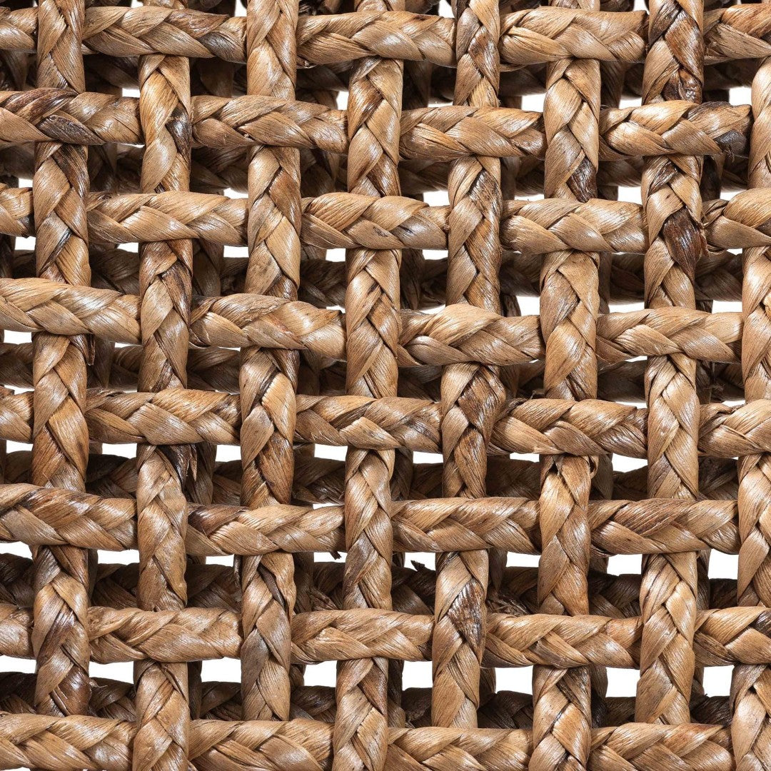 - Handwoven seagrass arranged in a lattice pattern creates an airy, rustic display