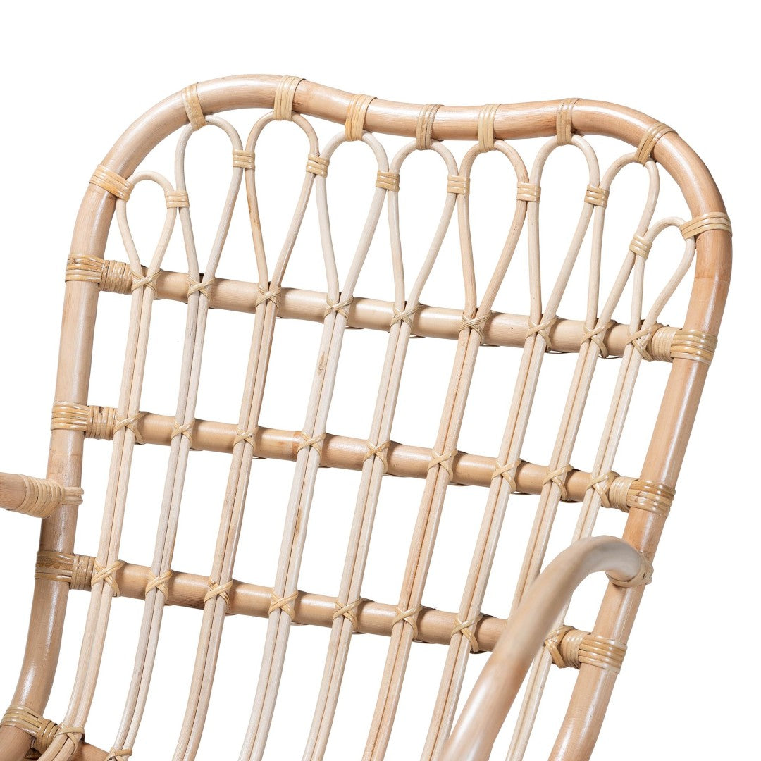 Bring a touch of tropical, handcrafted charm to your living space with the Bajo arm chair — a modern bohemian piece that blends organic materials and sculptural design for comfortable, casual seating. Handcrafted in Indonesia from natural rattan, this chair features an airy openwork back, ergonomic armrests, and angled legs that create a relaxed yet refined silhouette ideal for lounges, sunrooms, or reading nooks.