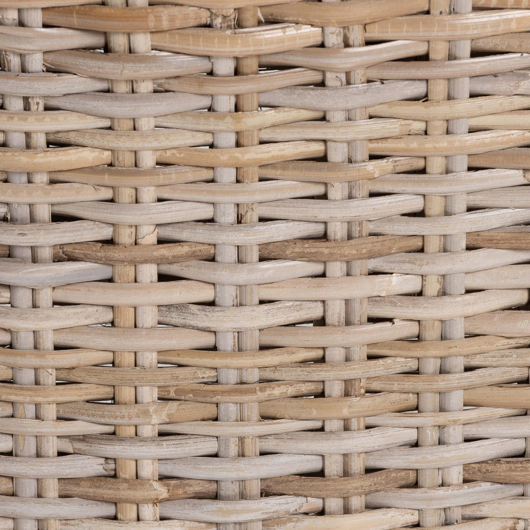 - Materials: Solid mahogany wood frame with handwoven natural Kubu rattan embellishments
