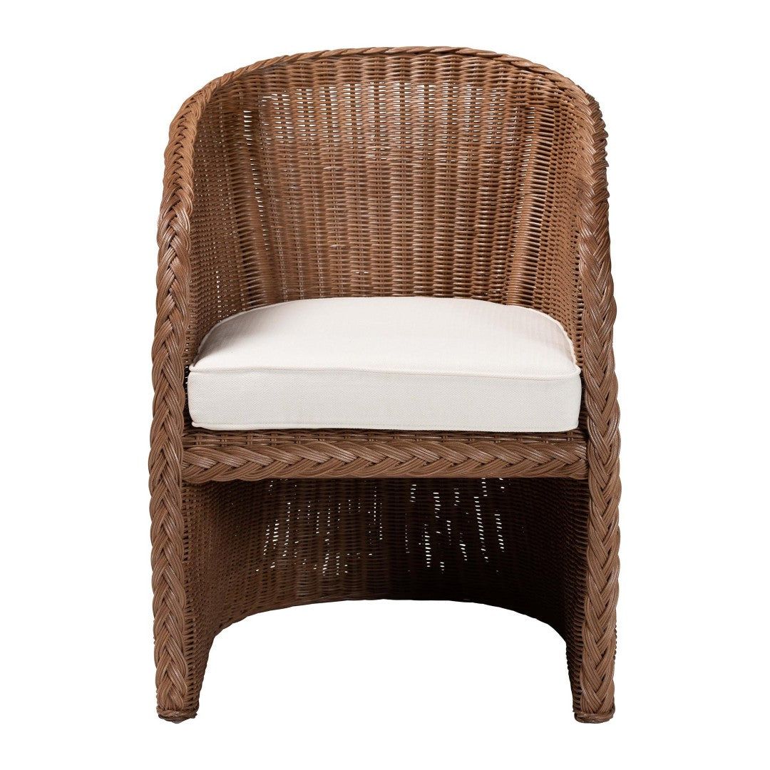 Bring a touch of laid‑back, island-inspired style to your living room, sunroom, or covered patio with this handcrafted bohemian arm chair. Woven by skilled artisans in Indonesia from natural rattan, the chair combines an artful braided silhouette and gently sloping armrests with a plush removable cushion for everyday comfort. Fully assembled and ready to use, it blends rustic texture and relaxed elegance to create a cozy focal point in any seating arrangement.