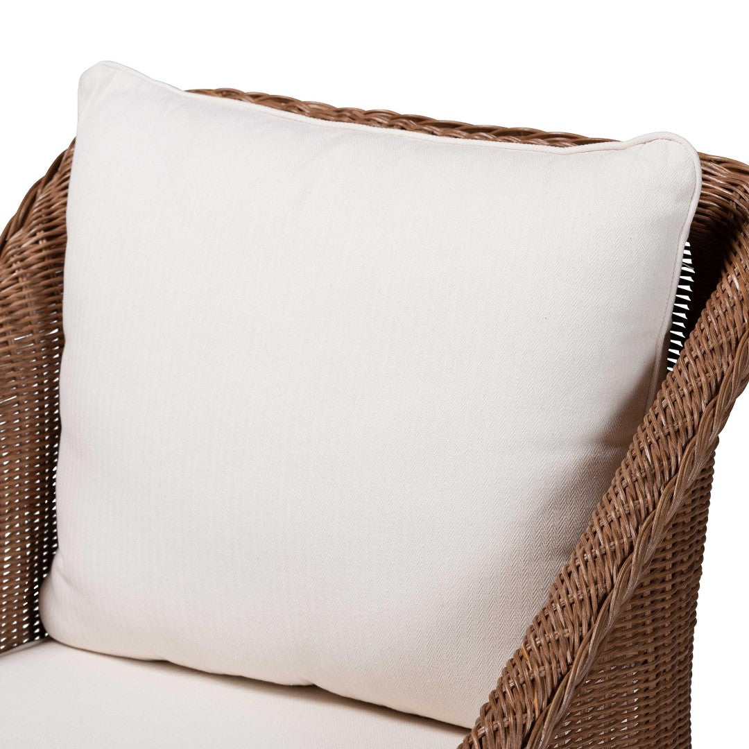 Invite relaxed, bohemian charm into your home with this handcrafted Derris 2-piece arm chair and footstool set. Made in Indonesia from natural braided rattan, the set blends artisanal detail with everyday comfort—sloping armrests and woven accents give it a relaxed, sculptural silhouette while plush removable cushions offer cozy support. Perfect for sunrooms, reading nooks, or tranquil corners, the Derris set arrives fully assembled so you can enjoy it right away.