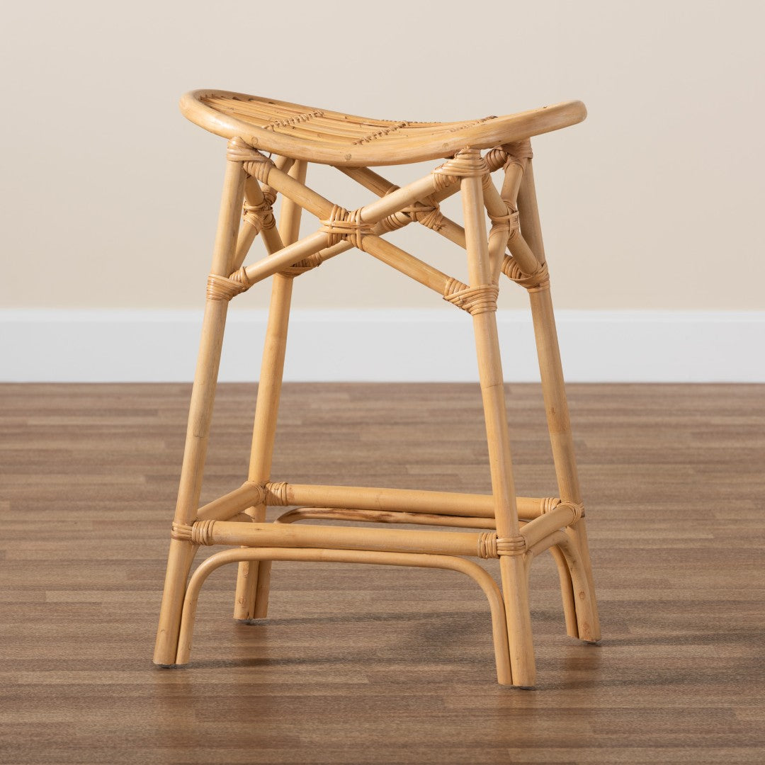 Bring relaxed, tropical style to your kitchen or bar with the Elgon counter stool — a handcrafted blend of modern bohemian design and natural rattan craftsmanship. Made in Indonesia by skilled artisans, its gently bent seat and angled legs deliver both visual appeal and everyday comfort. Fully assembled and thoughtfully detailed, the Elgon is an effortless way to elevate casual dining and entertaining areas.