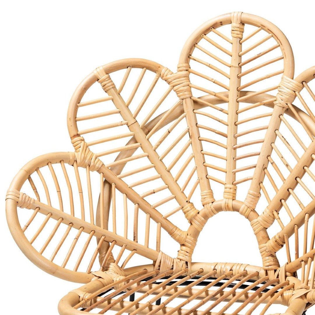 - Design details: Flora-inspired, leaf-like backrest woven from slim rattan rods that fan outward for a comfortable, embracing profile.