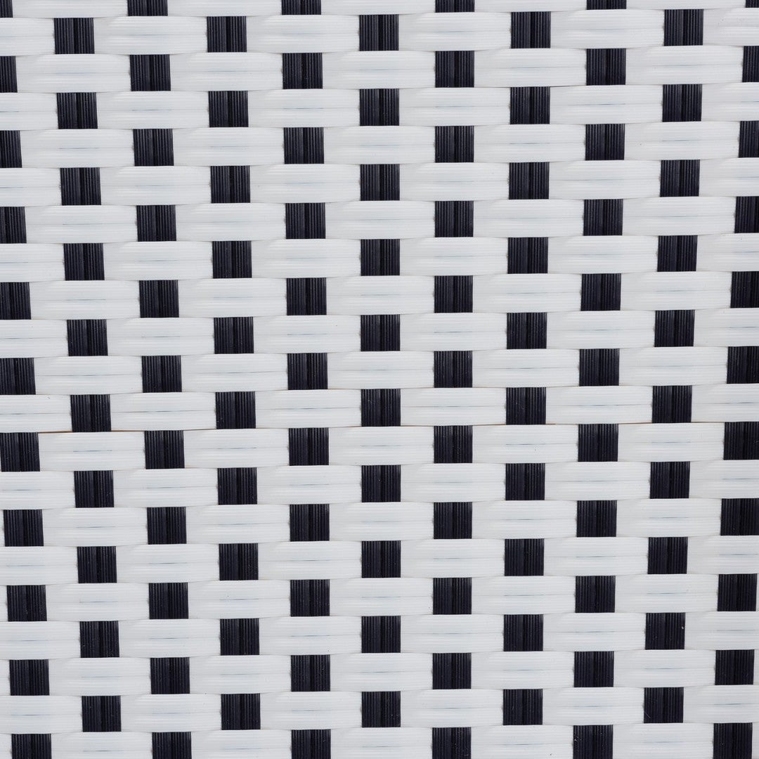 - Materials: Natural rattan pole frame wrapped in black-and-white plastic weaving for an authentic look with enhanced weather resistance.