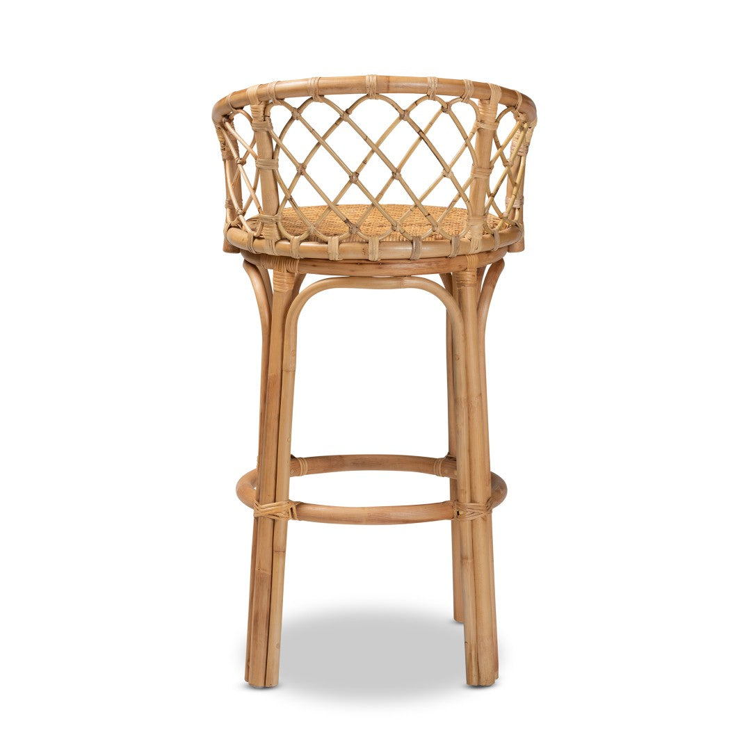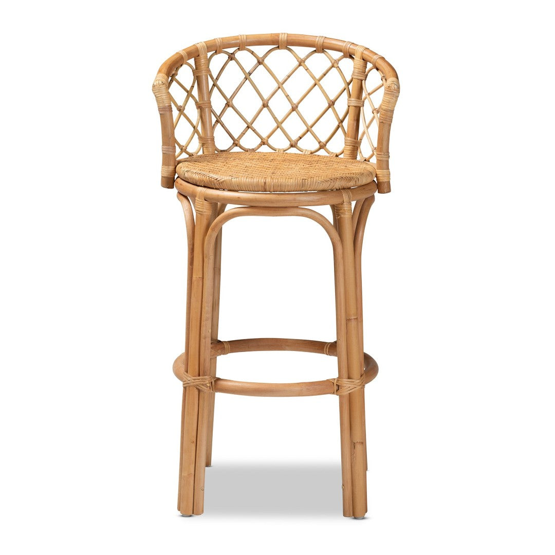 Bring natural warmth and modern bohemian style to your bar or lounge with the Orchard bar stool. Handcrafted in Indonesia from natural rattan, this stool combines organic texture and sculptural curves for a relaxed yet refined look. The rounded frame flows into sloping armrests and a woven back for visual interest, while an ergonomic footrest and generous seat make it comfortable for extended gatherings. Because it’s made from natural materials, each piece may show unique variations in color, grain, and texture—adding character to your space.