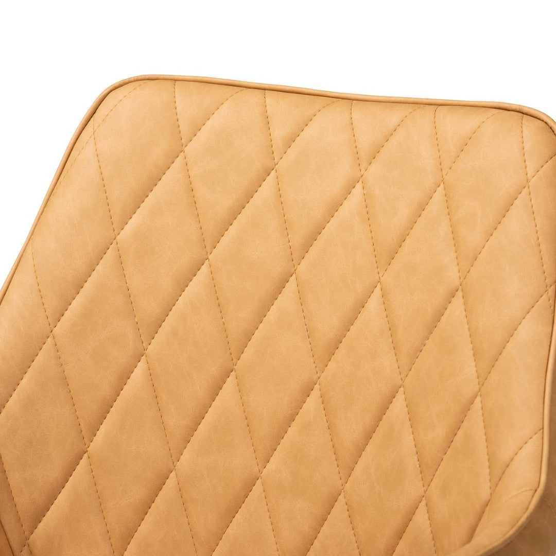 - Upholstery: Durable tan faux leather with a diamond-stitch pattern for added texture and visual interest
