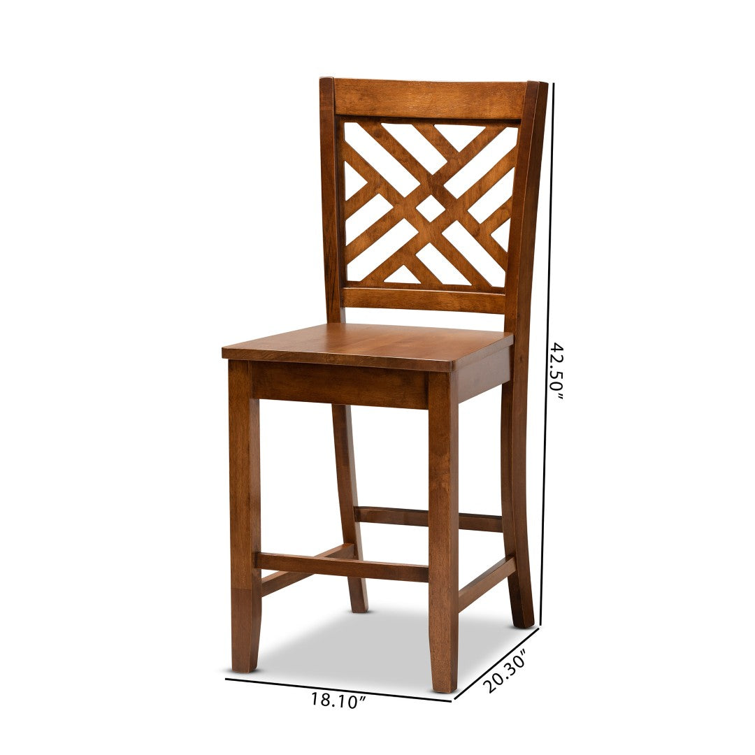 Elevate your kitchen or pub area with the Caron counter stool — a refined blend of modern, contemporary, and transitional design. Crafted from solid oak and rubberwood with a rich walnut brown finish, this two-piece set offers clean lines, a distinctive cut-out back, and thoughtful ergonomics for everyday comfort. Ideal for casual dining or entertaining, the Caron stools pair effortlessly with counters and pub tables while adding visual warmth to your space.