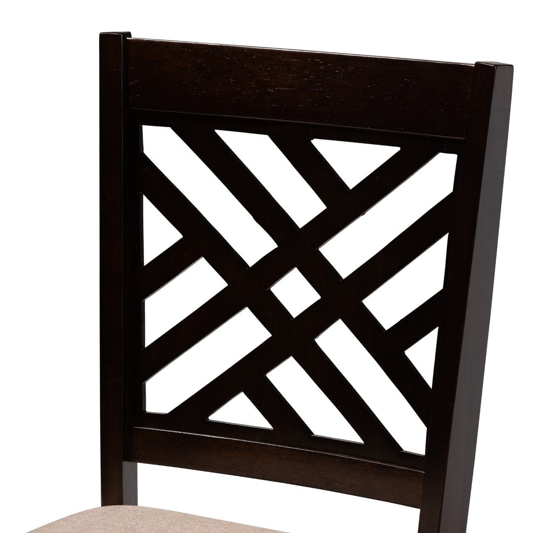 Elevate your dining area with the Caron dining chair — a modern, thoughtfully designed seating solution that blends contemporary style with everyday comfort. Crafted from solid rubberwood and upholstered in a light polyester fabric, the Caron pairs a rich espresso brown finish with a slim silhouette, foam-padded seat, and a distinctive cut-out back for visual interest. Perfect for formal dinners or casual family meals, this set of four chairs offers durable construction and refined details that enhance any dining room.