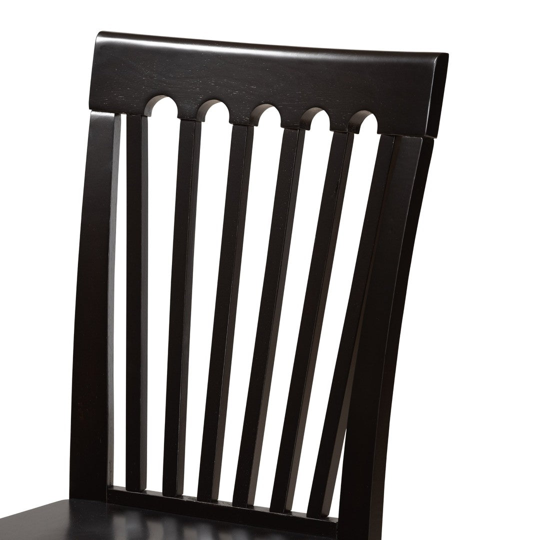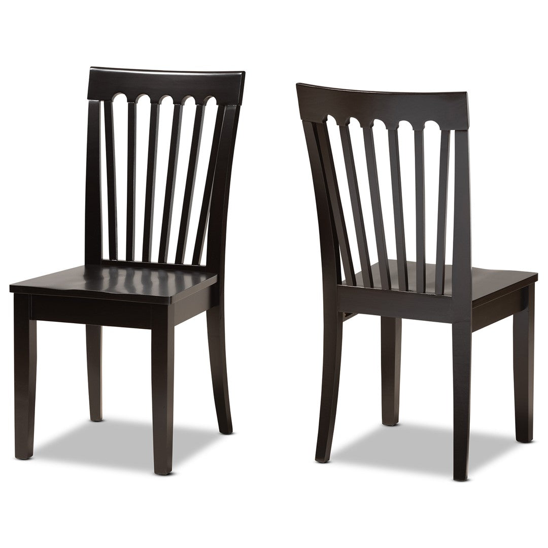 Elevate your dining space with the Minette dining chairs — a blend of timeless silhouette and contemporary comfort. Crafted from solid oak and rubberwood with a rich dark brown finish, these chairs offer durable construction, tasteful detailing, and an ergonomic scoop seat that supports everyday dining and entertaining.