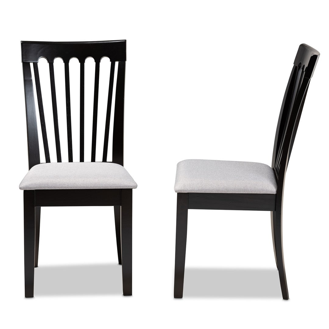 Elevate your dining area with the Minette dining chair—a refined blend of modern silhouette and everyday comfort. Crafted from solid oak with an espresso brown finish and light gray polyester upholstery, this 2-piece set offers a plush, foam-padded seat and a distinctive cut-out back that adds visual interest while maintaining sturdy support. Ideal for both formal dinner parties and casual family meals, the Minette pairs contemporary style with reliable construction and easy assembly.